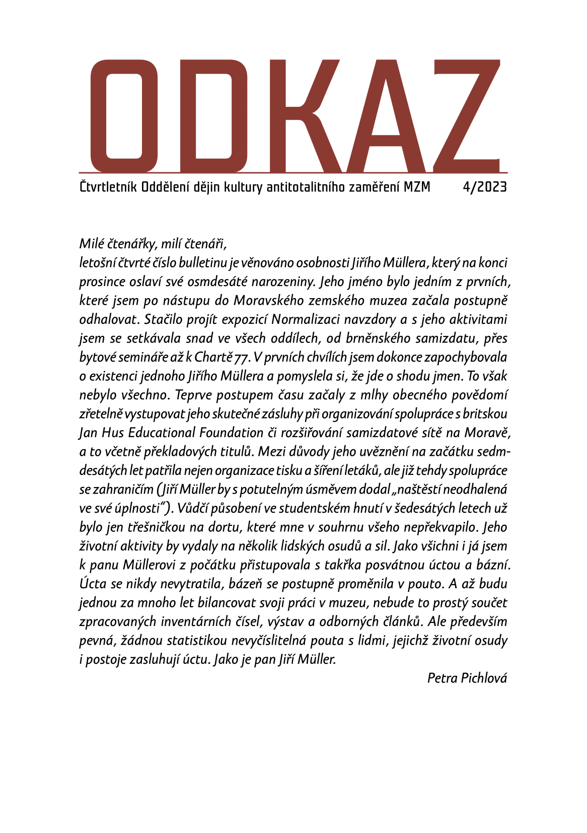 ODKAZ 4/23 - bulletin Oddělení dějin kultury antitotalitního zaměření MZM