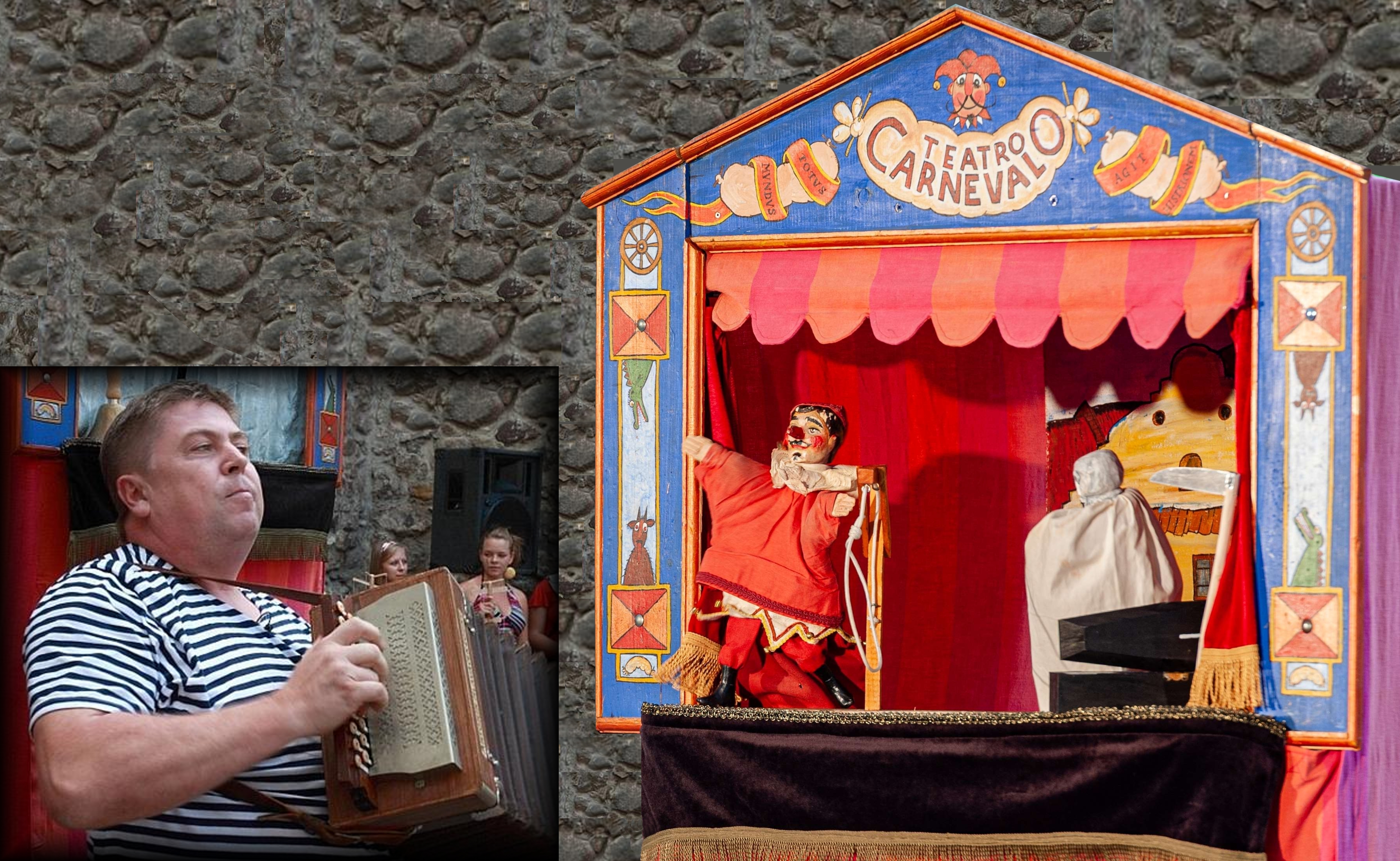 Autor expozice Jaroslav Blecha spolu se svým slovenským kolegou Jurajem Hamarem nejen povypráví o tradičních, zejména tak zvaných varietních neboli akrobatických loutkách, ale také je publiku předvedou v akci za doprovodu stylové heligonky.