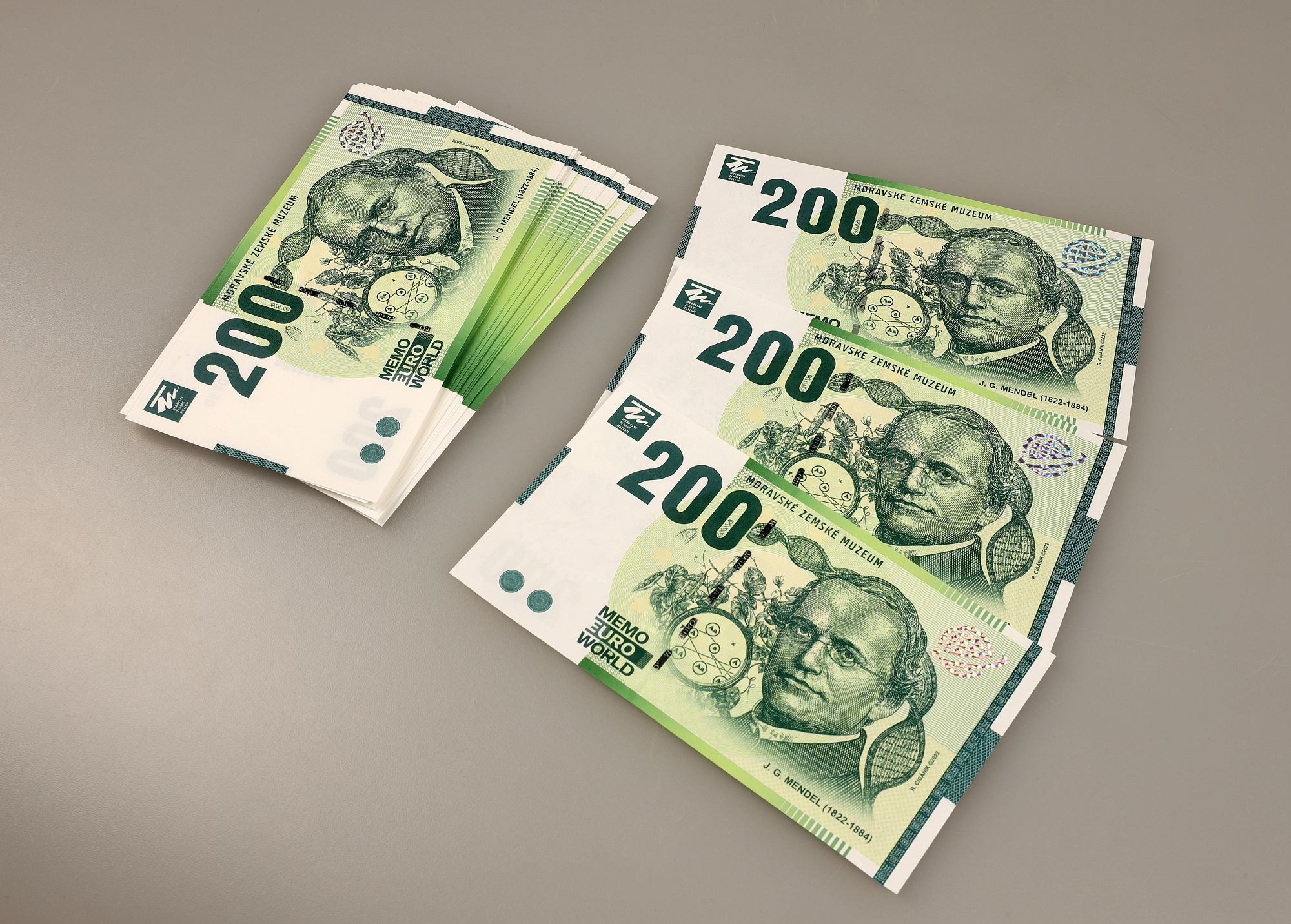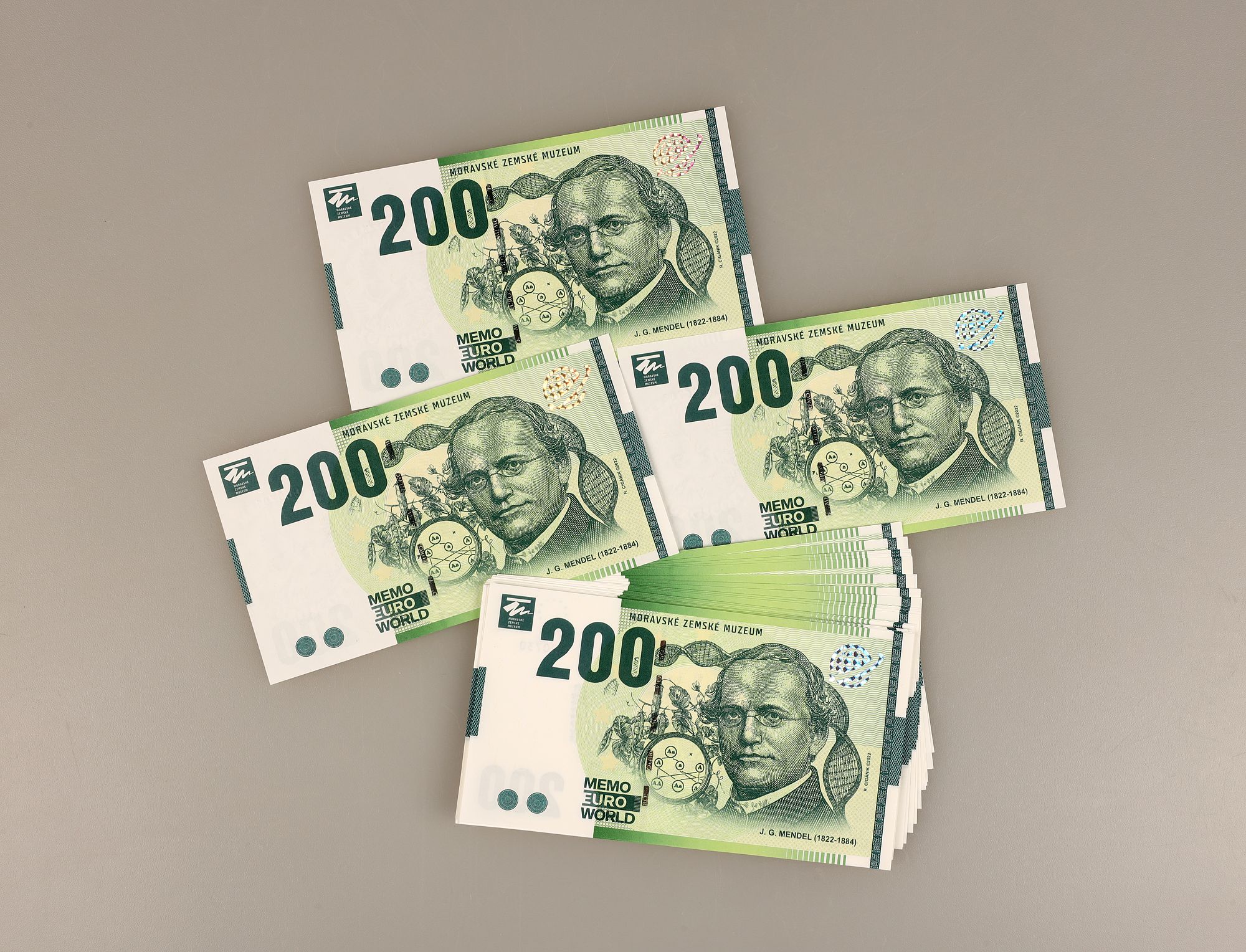 Moravské zemské muzeum vydalo v limitovaném množství unikátní pamětní bankovku s portrétem J. G. Mendela s nominální hodnotou nula euro. Bankovky jsou ze stoprocentního bavlněného papíru, který se používá při výrobě skutečných eurobankovek. Obsahují rovněž některé ochranné prvky jako hologram či mikrotisk. Každý kus je přitom originál, na svém povrchu nese pořadové číslo, stejně jako mají i skutečné peníze.
