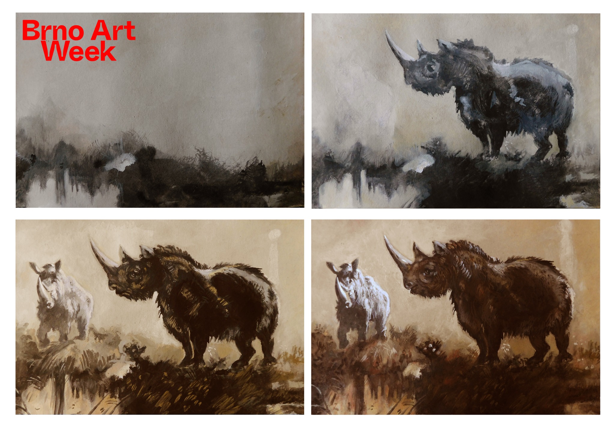 • studijní kresby podle reprodukcí vystavených kvašů Z. Buriana (základy správné výstavby kresebné kompozice, příprava podkladů pro kvašovou studii)
