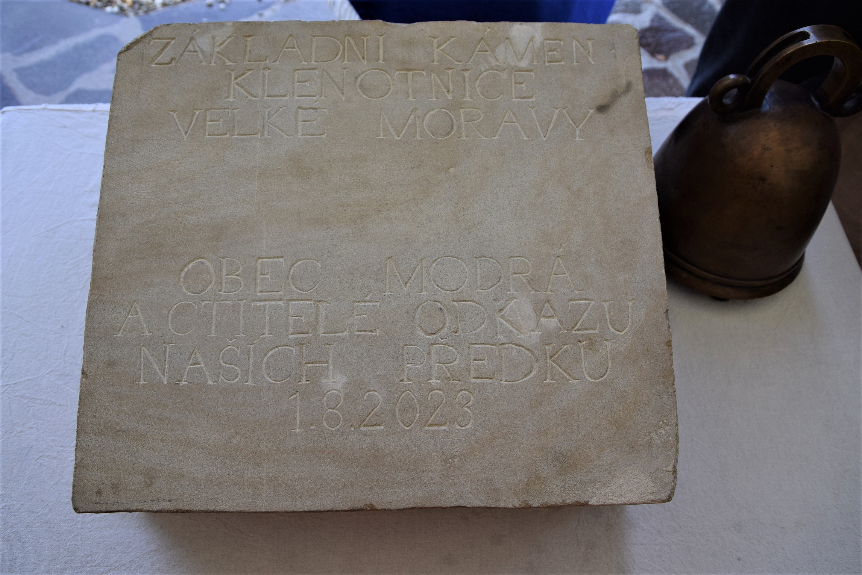 Před 20 lety, dne 1. srpna 2003, byly v Modré zahájeny úvodní práce na realizaci archeologického skanzenu s názvem „Opevněné velkomoravské sídliště středního Pomoraví“, dnes tak úspěšného projektu. Je symbolické, že 1. srpna 2023, byl za přítomnosti starosty obce Miroslava Kováříka, čelných představitelů Zlínského kraje, MZM a dalších významných hostů požehnán základní kámen, který s odkazem obyvatel obce Modrá bude vpraven do zdiva klenotnice.