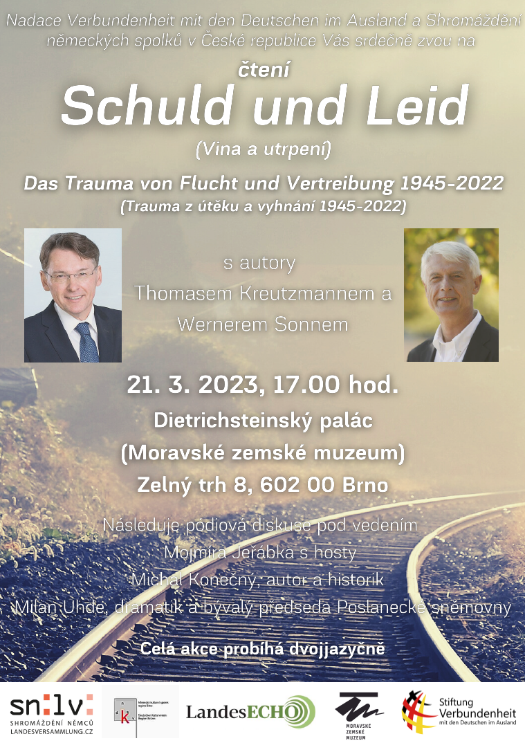 Nadace Verbundenheit mit den Deutschen im Ausland a Shromáždění německých spolků v České republice Vás srdečně zvou na čtení Vina a utrpení/Schuld und Leid s autory Thomasem Kreutzmannem a Wernerem Sonnem.