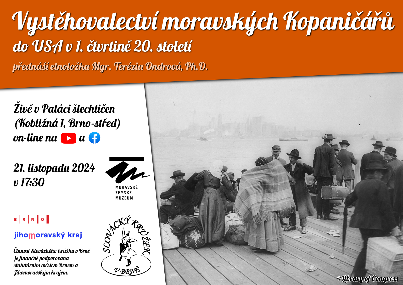 Hlavní vlna emigrace z oblasti Moravských Kopanic (z obcí Starý Hrozenkov, Vápenice, Vyškovec, Lopeník a Žítková) do Spojených států amerických proběhla na začátku 20. století, kdy se místní obyvatelé rozhodli opustit své domovy v naději lepšího života za oceánem. V přednášce nejprve prozkoumáme hlavní důvody, které vedly obyvatele Moravských Kopanic k tak zásadnímu kroku, jako byla emigrace - ať už šlo o hospodářské problémy, nedostatek příležitostí či touhu po svobodě a lepších podmínkách. Poté přiblížíme samotný průběh cesty do států, který často znamenal dlouhou a nebezpečnou plavbu přes Atlantik, plnou nejistot a výzev. Zvláštní pozornost bude věnována také prvním krokům emigrantů po příjezdu do USA, jejich zařazení do pracovního procesu a integraci do americké společnosti.
