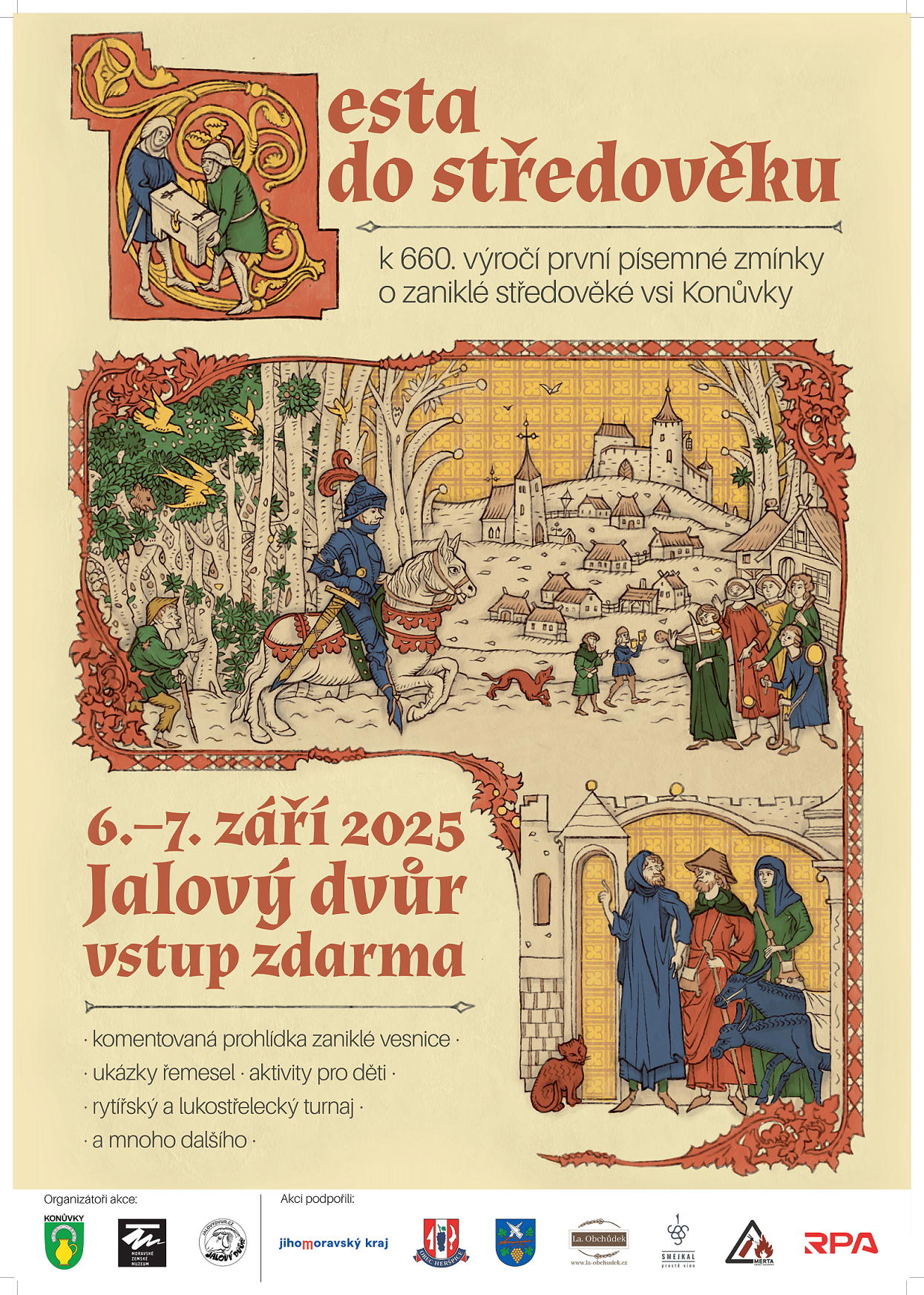 Letos si připomínáme výročí 660 let od první písemné zmínky o zaniklé středověké vsi Konůvkách. Při této příležitosti pořádá spolek Konůvky a Moravské zemské muzeum 6. - 7. září 2025 na Jalovém dvoře v Heršpicích akci pro všechny zájemce o historii. Součástí dvoudenní akce bude kromě sobotního programu na Jalovém dvoře s řemeslníky a turnajem také nedělní kostýmovaná pouť do Konůvek zahrnující několik překvapení. Všichni zájemci o středověk a regionální historii jsou srdečně zváni.