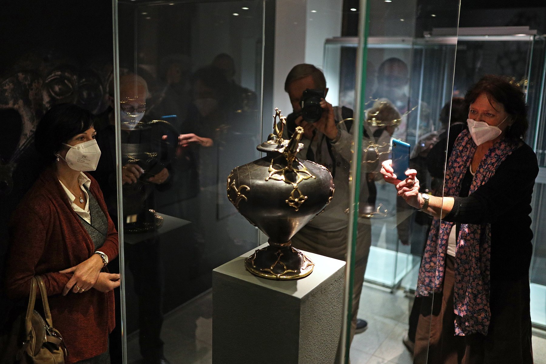 Rituální konvice s bronzovými aplikacemi z keltského pohřebiště v Brně-Maloměřicích.
