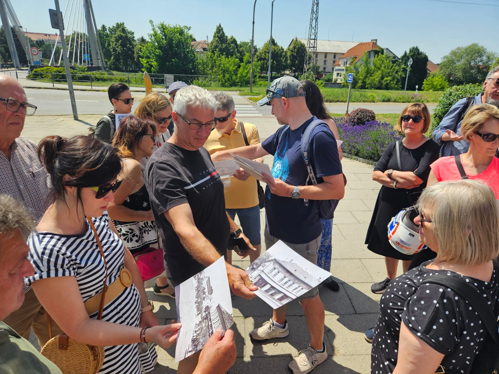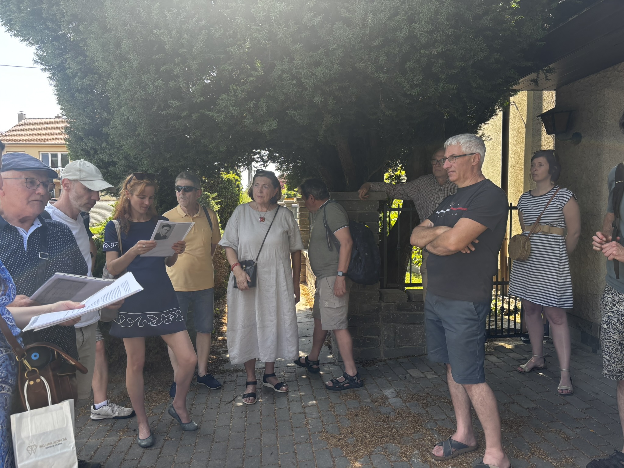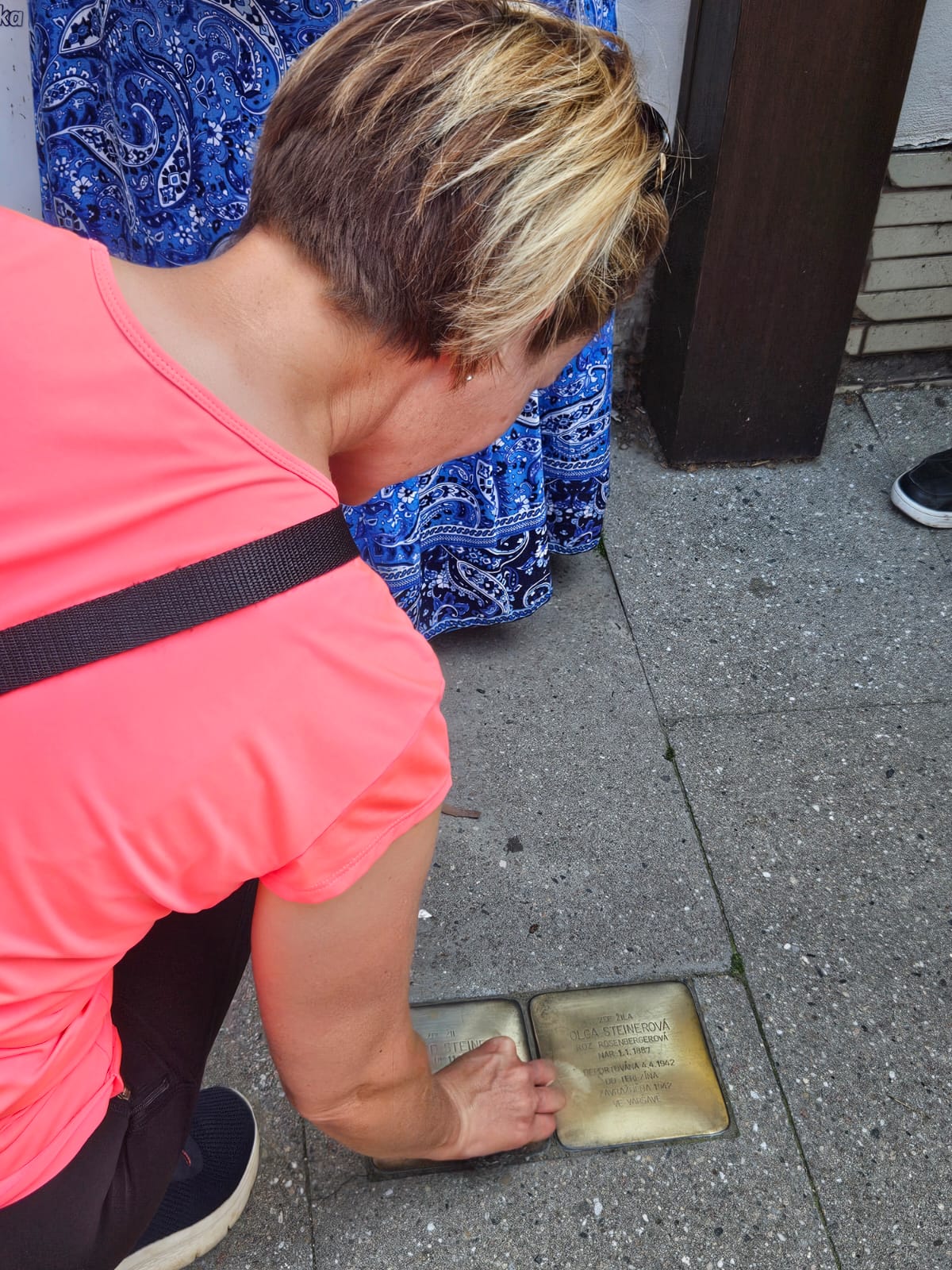 Prohlídkou provázely Mgr. Dana Vedra a Mgr. Táňa Klementová. Ta se ve svém dlouhodobém výzkumu se věnuje osudům židovských obyvatel Moravy v době holocaustu, pátrá po jednotlivých osobnostech a rodinách. U jednotlivých pomníčků byly připomenuty rodiny Burianových, Kosinových, Krausových, Steinerových, Stiassných, Otto Fischla, Elišky Morgensternové a dalších. Komentář byl provázán historickým kontextem perzekucí osob označených tzv. Norimberskými zákony za židy a židovské míšence. Tato skupina byla v Židlochovicích zvlášť hojněji zastoupená, proto se výklad zaměřil i na tyto perzekuované obyvatele.
