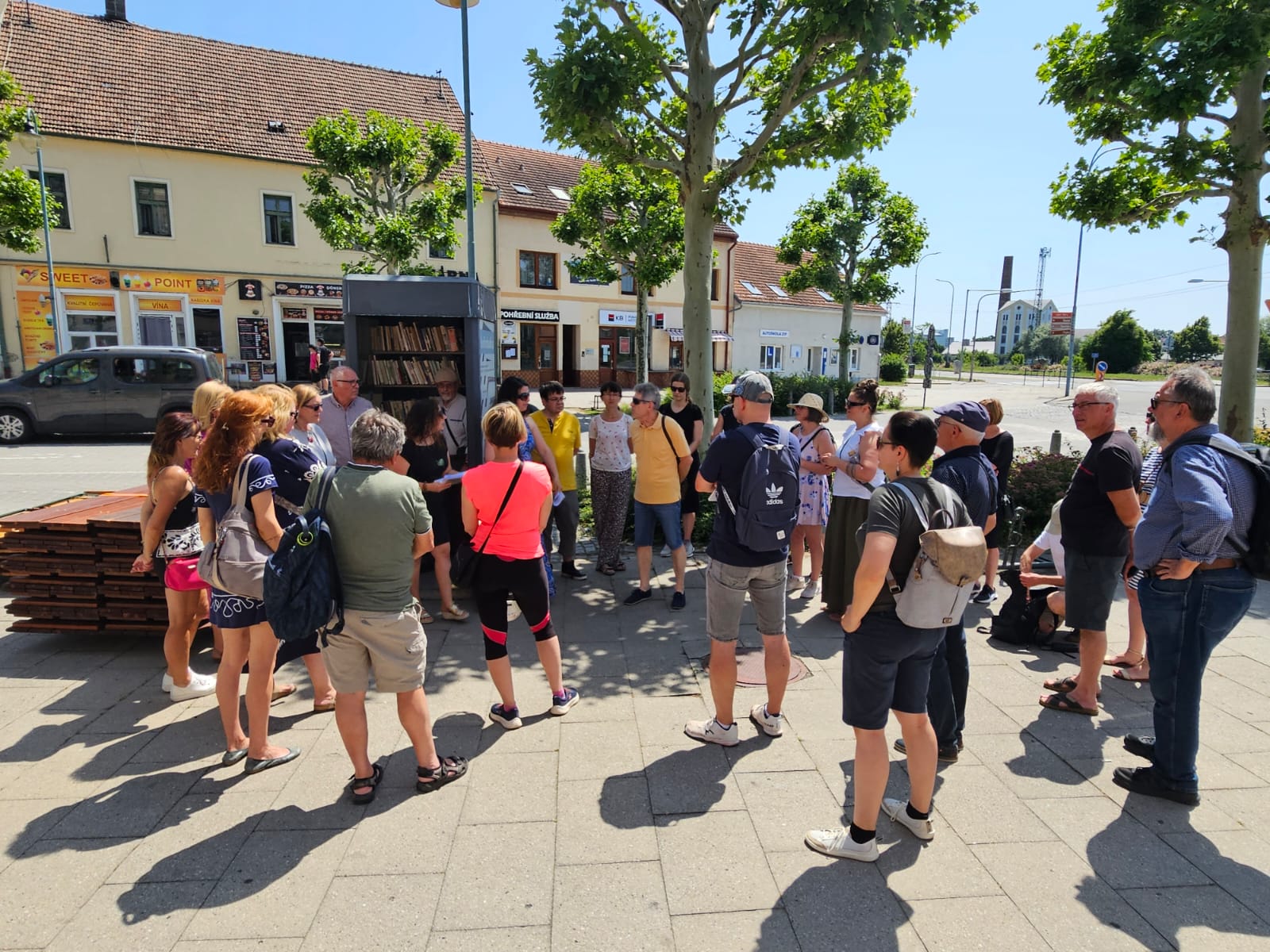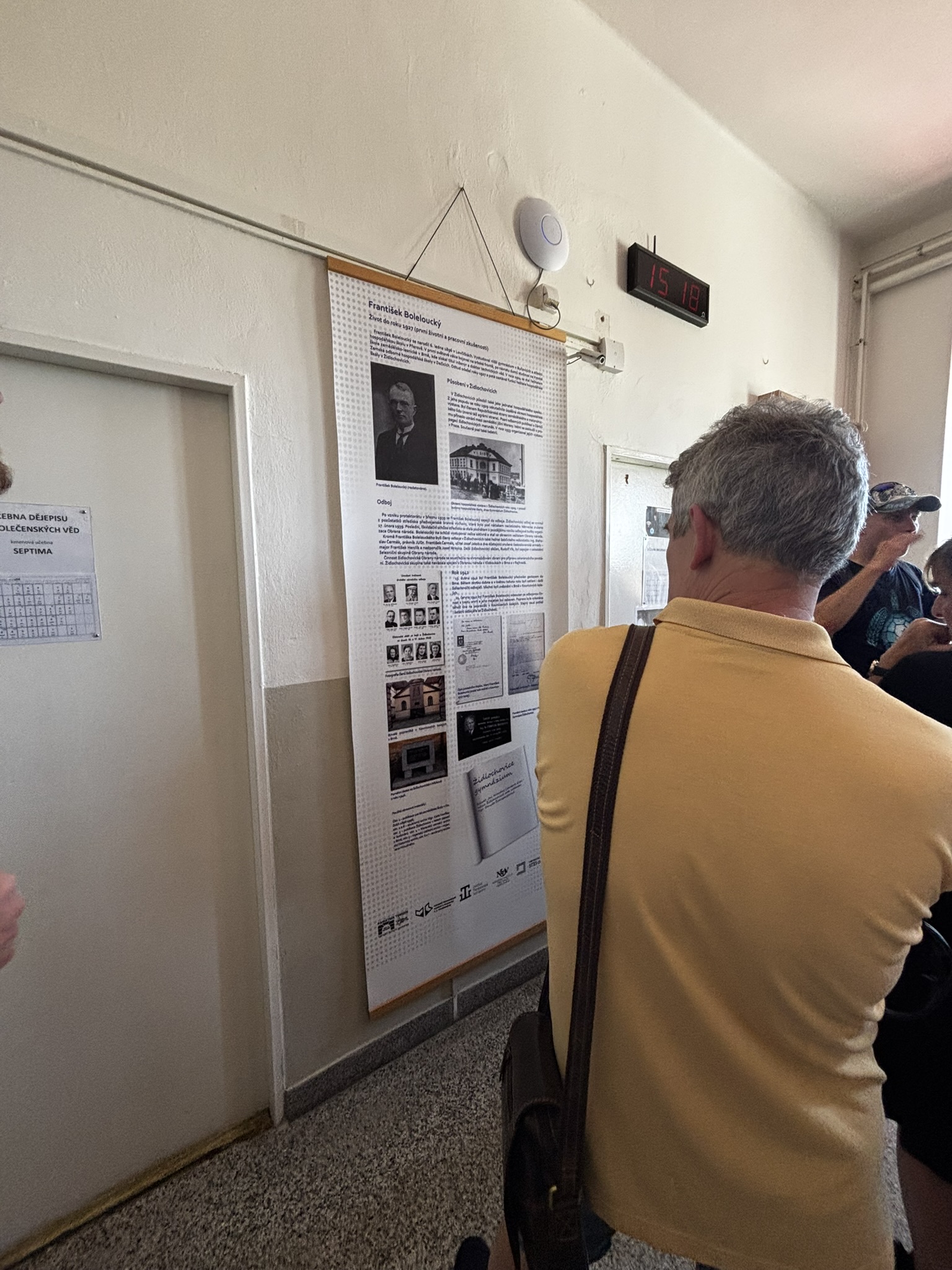Z náměstí vedla další cesta do budovy gymnázia, kde byla vzpomenuta osobnost Františka Bolelouckého. Tomáš Dratva z Vlastivědného spolku provedl zájemce i drobnou výstavou věnovanou tomuto příslušníkovi domácího protinacistického odboje, jenž byl za svou činnost popraven. Prohlídka pokračovala na Žižkově, kde byla ukončena na Alšově ulici.