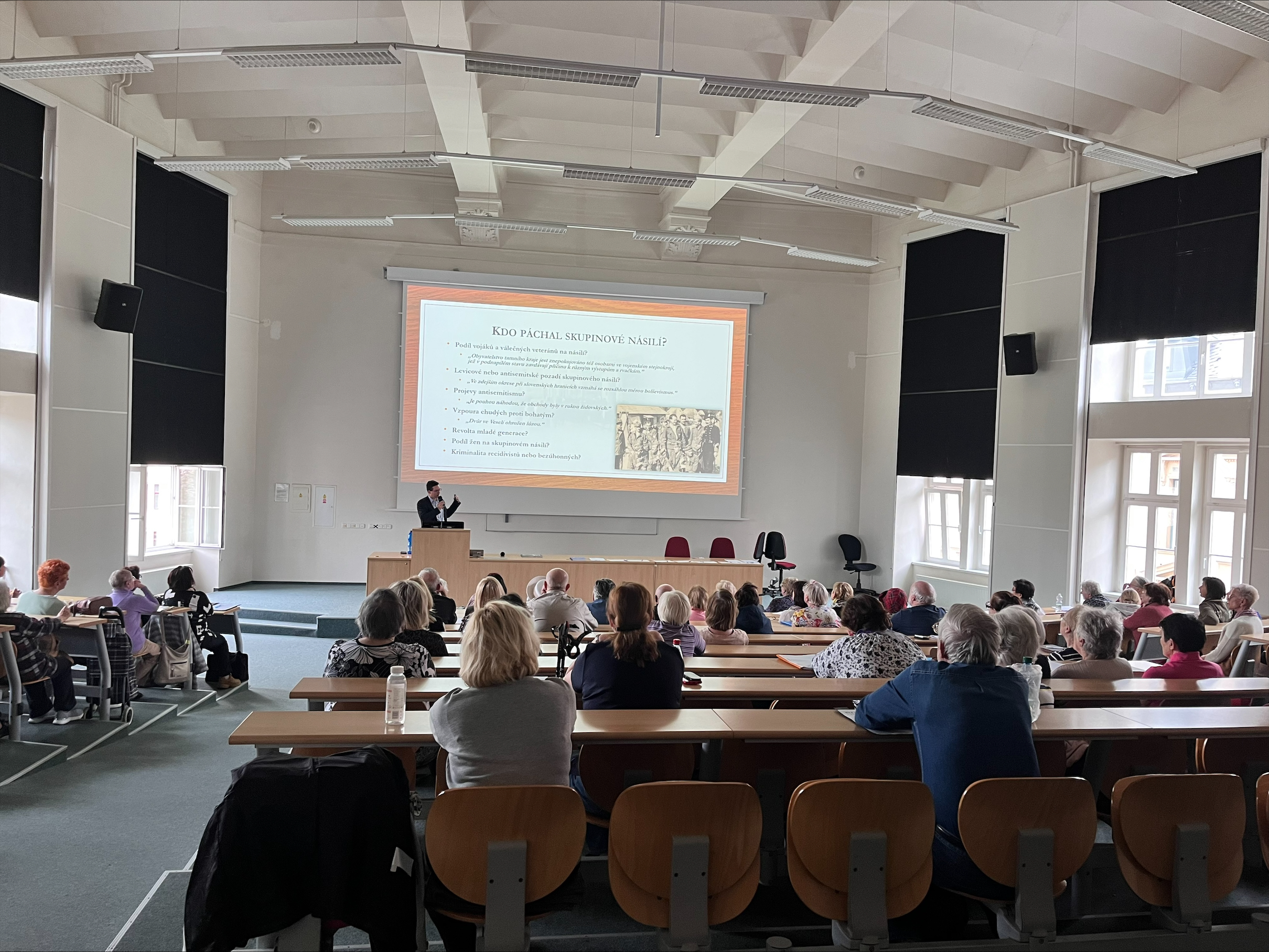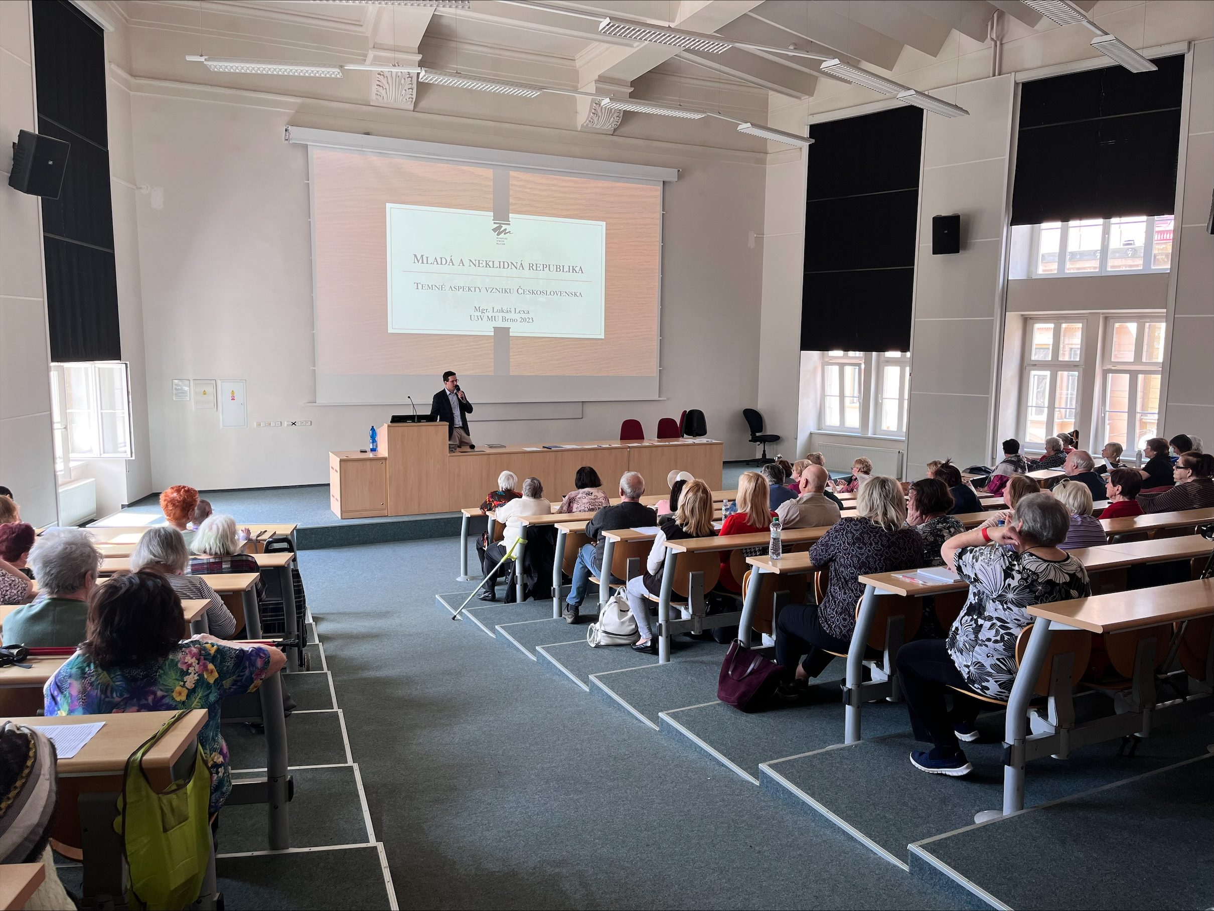 Pracovník Historického oddělení historik-kurátor Mgr. Lukáš Lexa si pro Univerzitu třetího věku připravil přednášku, která proběhla v pátek 21. dubna 2023. Prezentace s názvem Mladá a neklidná republika - Temné aspekty vzniku Československa se věnovala tématu ozbrojených konfliktů a skupinového násilí na počátku existence samostatného státu. Představila základní přehled konfliktů spjatých se vznikem ČSR a jejich dopady na území moravsko-slovenského pomezí. Výklad byl doplněn celou řadou dobových fotografií, grafik, map a dokumentárních záběrů.