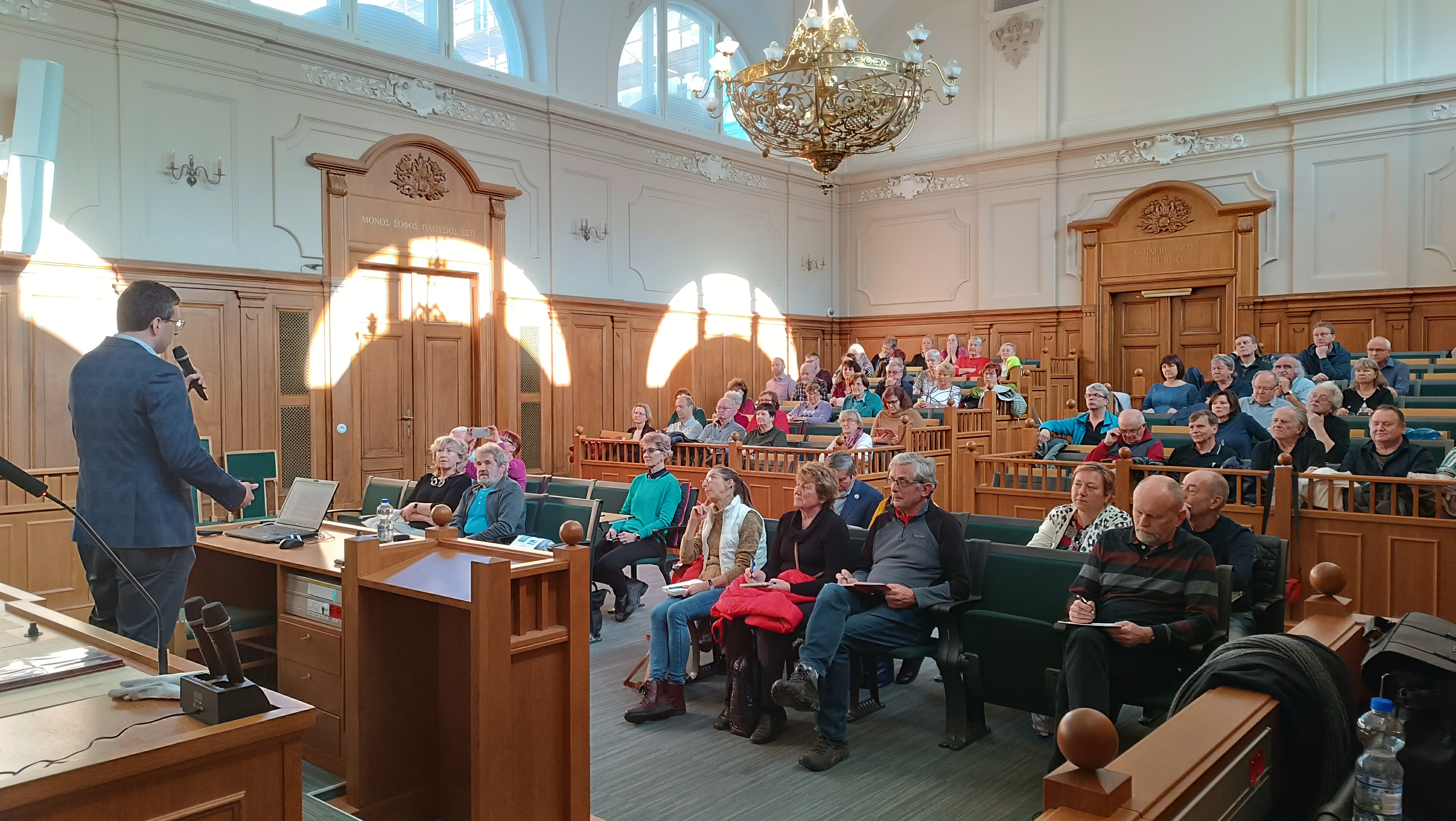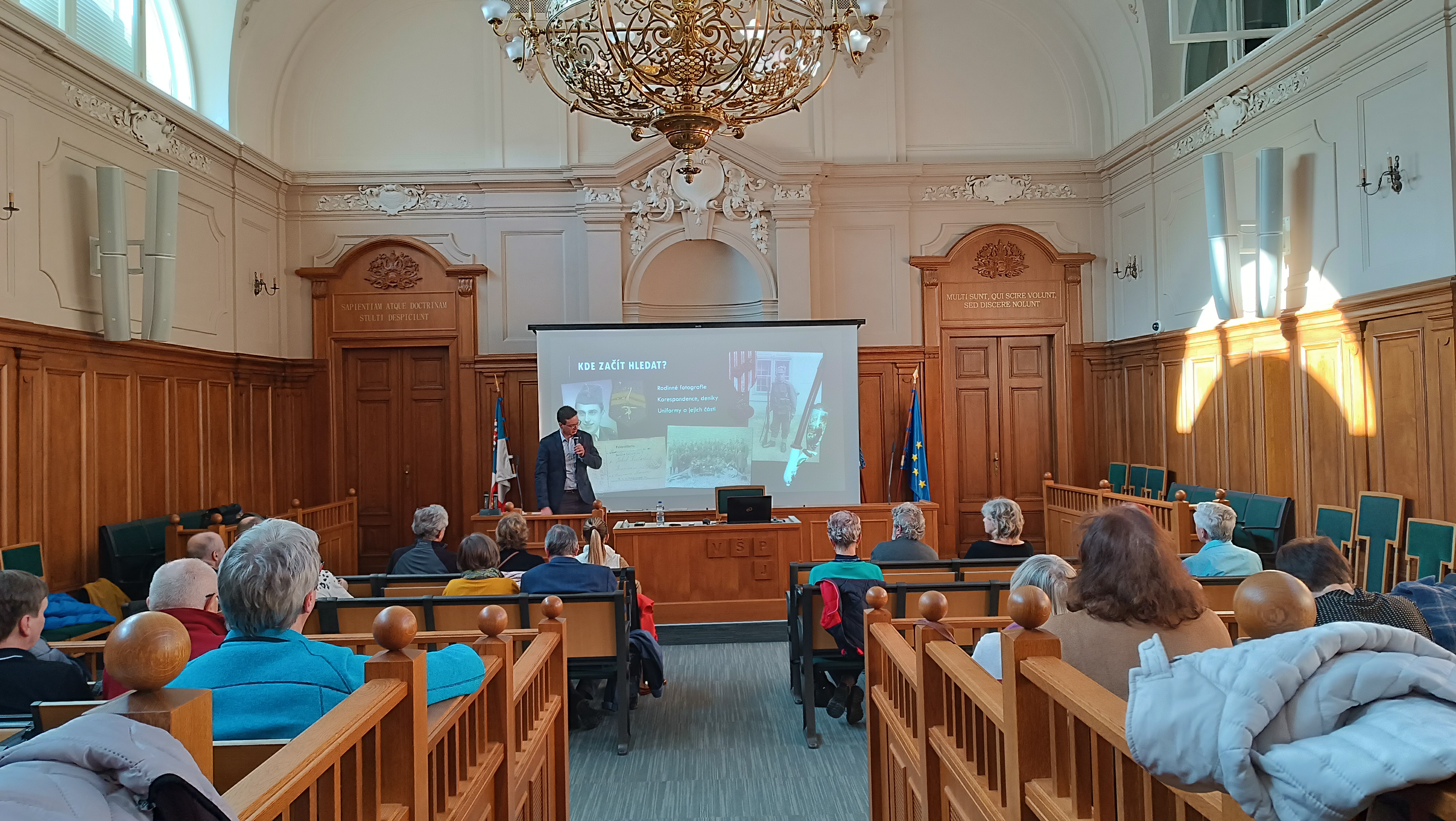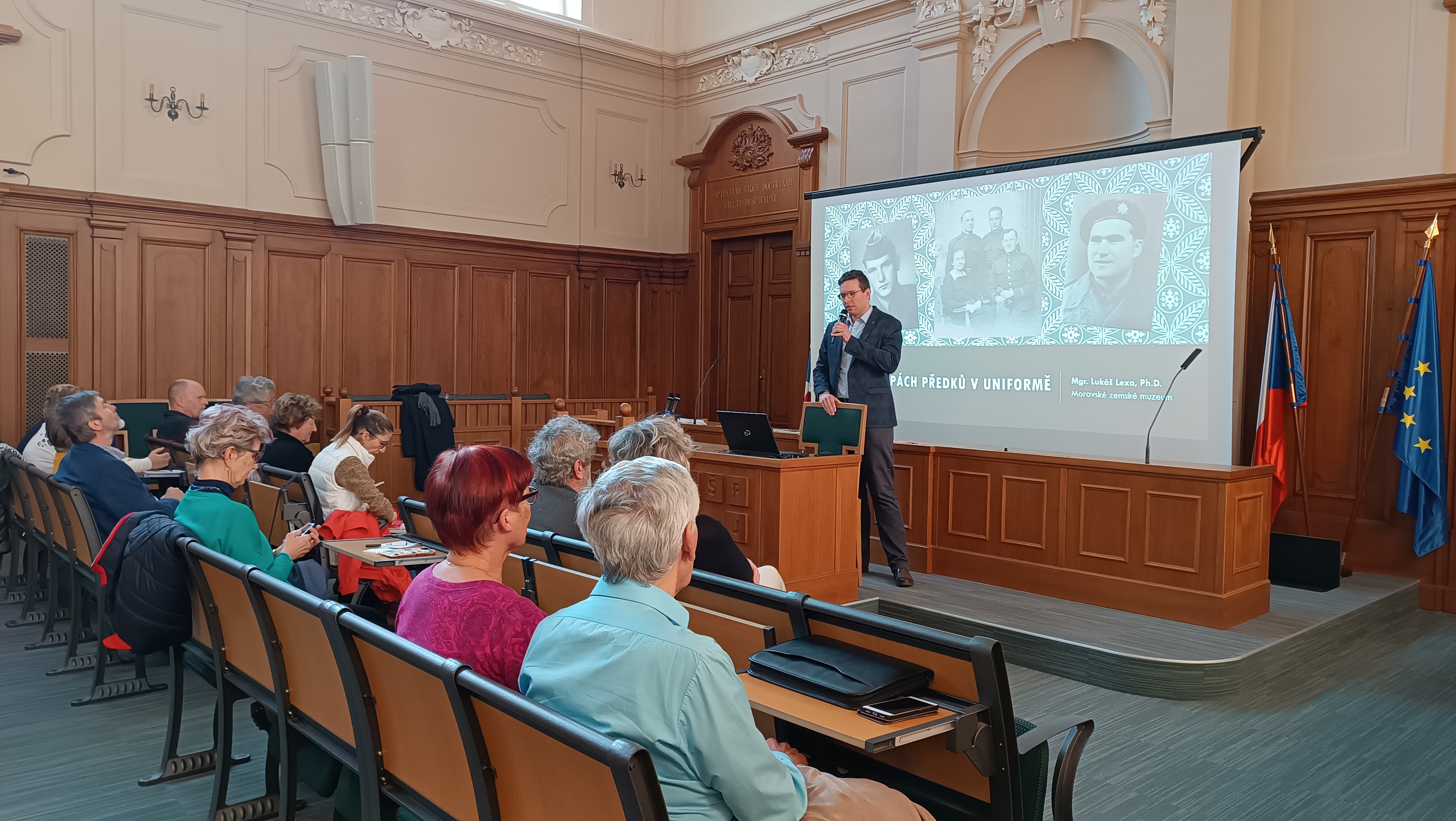 V úterý 19. března proběhla v historické aule Vysoké školy polytechnické v Jihlavě přednáška s názvem Po stopách předků v uniformě. Pracovník Historického oddělení MZM Lukáš Lexa na ní představil prameny k dohledání vojenské či třeba četnické služby předků z dob druhé poloviny 19. a první poloviny 20. století. Od osobních předmětů z pozůstalostí se přes základní vojenské evidence archivů dostal až k sofistikovanějším databázovým nástrojům nebo méně známým pramenům uloženým v lokálních archivech. Přednášku rovněž doplnila ukázka originálních předmětů (zejména vojenských osobních průkazů, identifikačních známek a vyznamenání). Za pozvání i milé přijetí patří poděkování doktorce Lence Lízalové a početnému publiku.