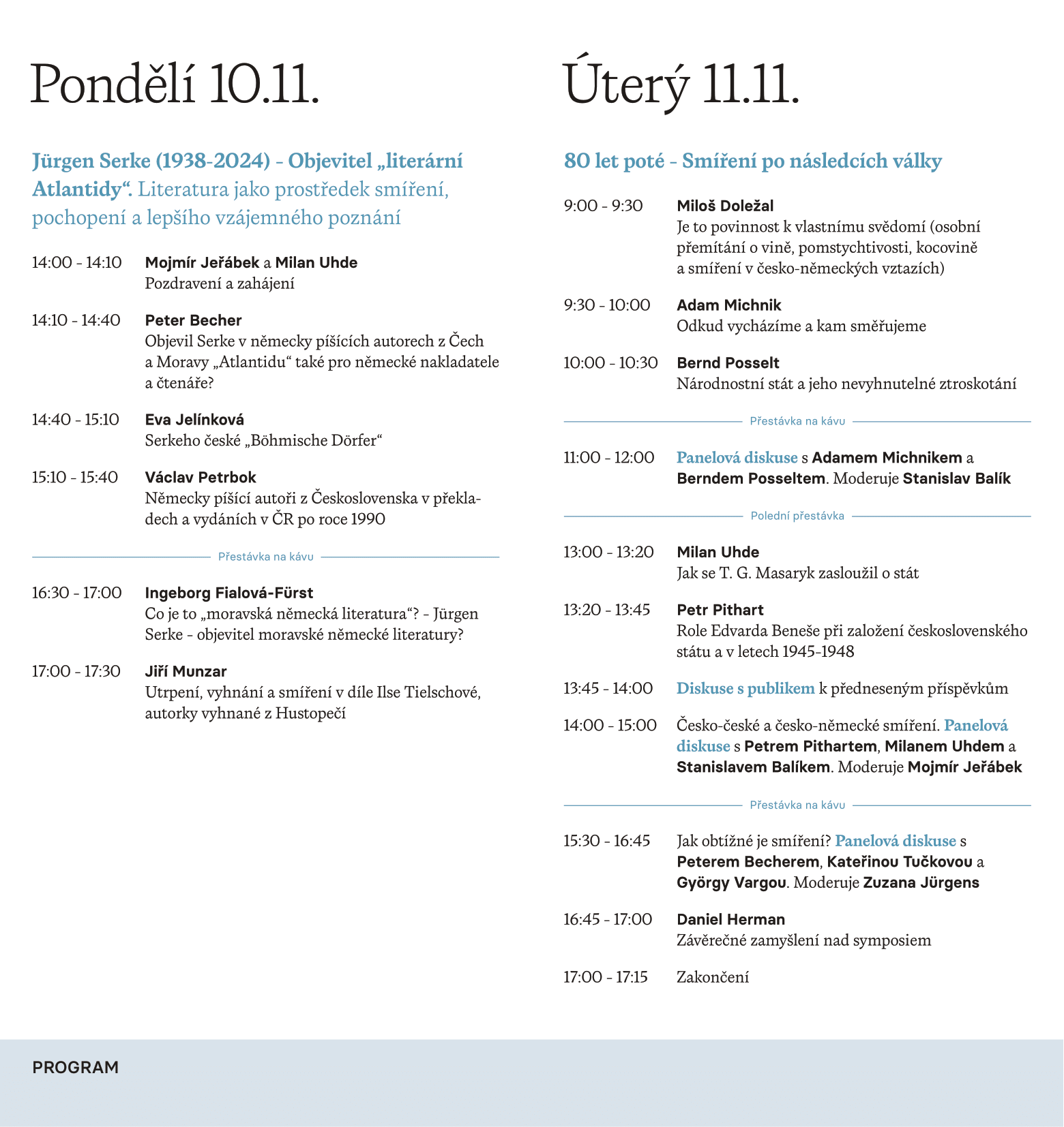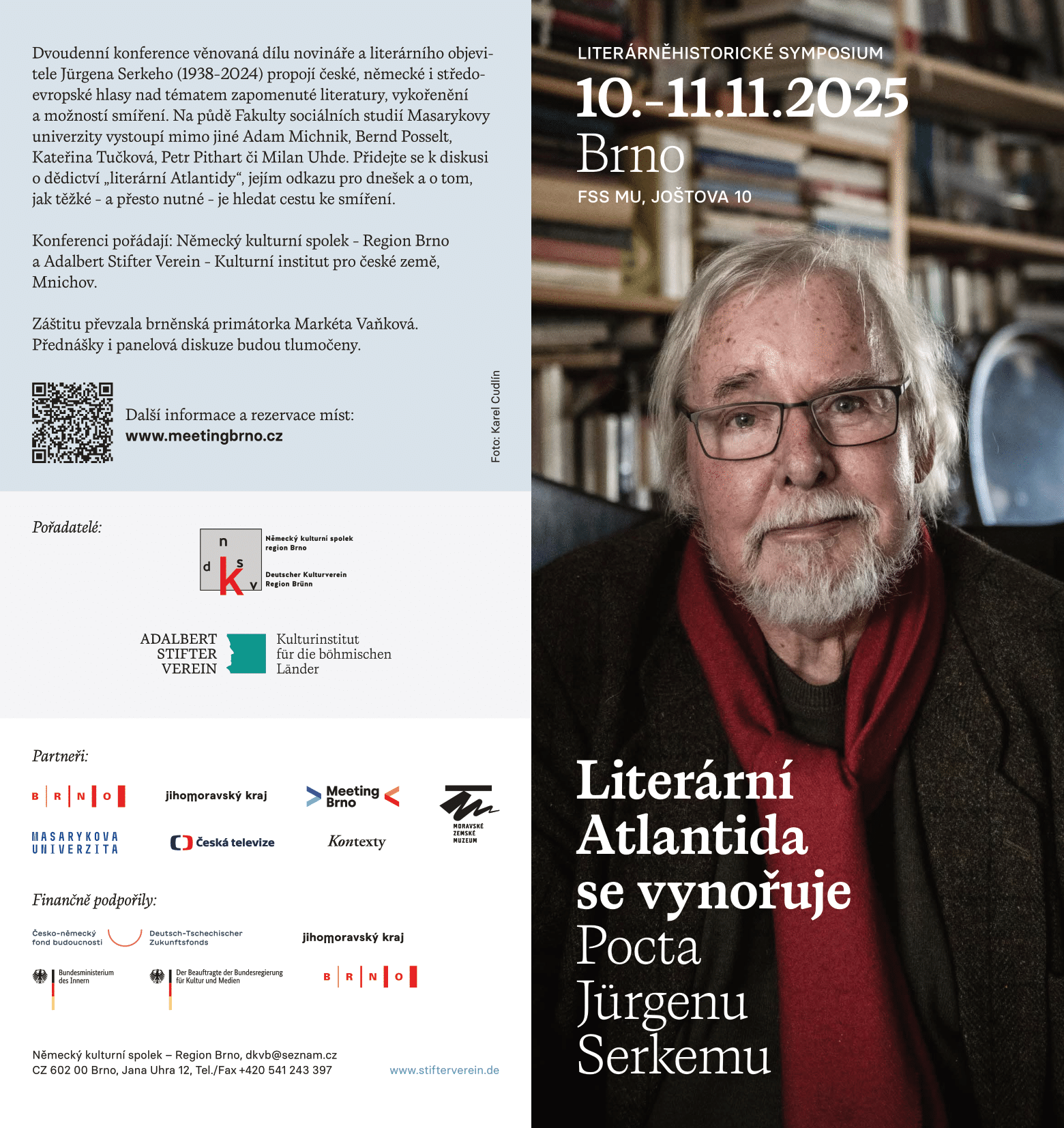 Dvoudenní konference věnovaná dílu novináře a literárního objevitele Jürgena Serkeho (1938–2024) propojí české, německé i další středoevropské hlasy nad tématem zapomenuté literatury, vykořenění a možností smíření. Na půdě Fakulty sociálních studií Masarykovy univerzity vystoupí mimo jiné Adam Michnik, Bernd Posselt, Kateřina Tučková, Petr Pithart či Milan Uhde. Přidejte se k diskusi o dědictví „literární Atlantidy“, jejím odkazu pro dnešek a o tom, jak těžké – a přesto nutné – je hledat cestu ke smíření.
