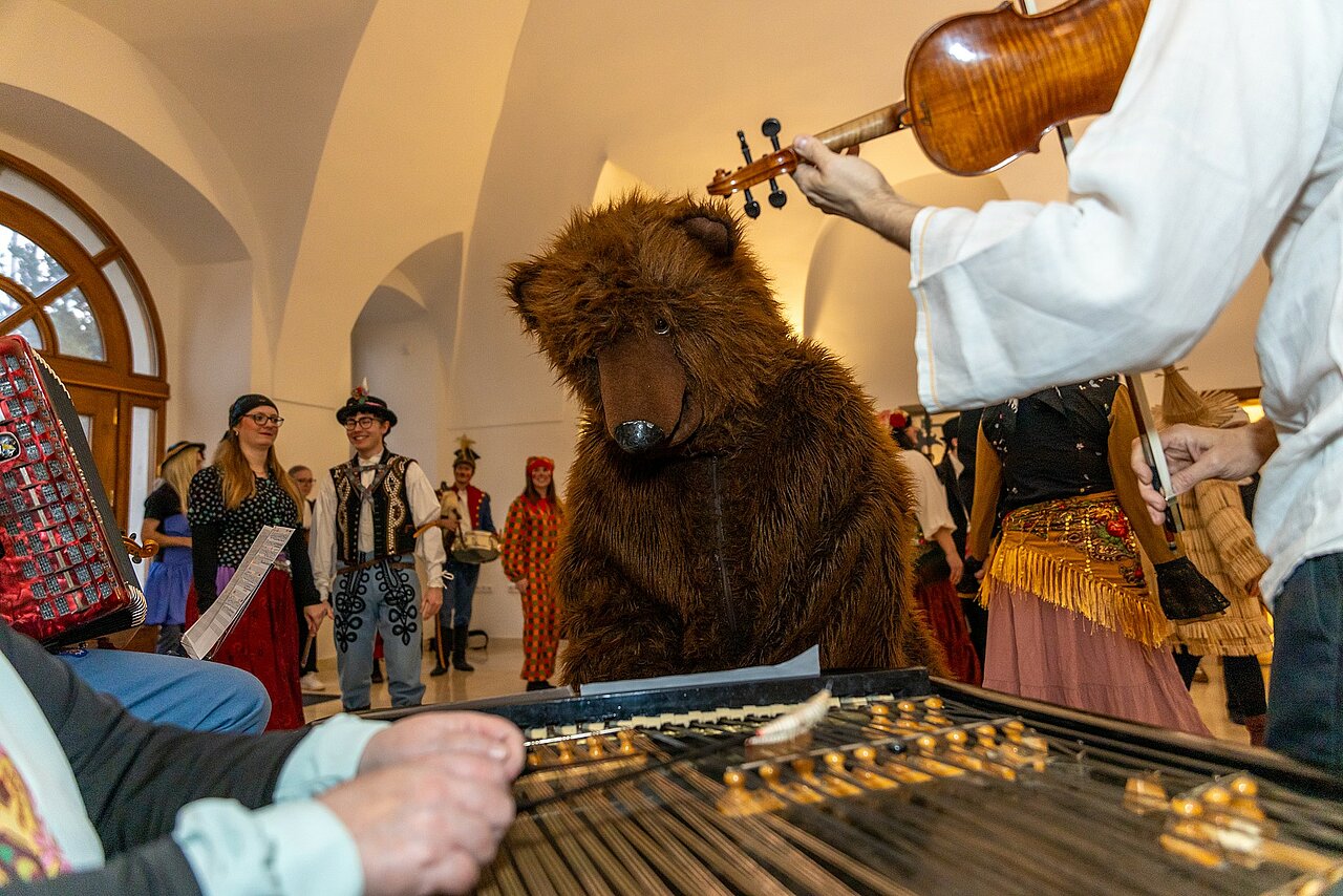 Zveme širokou veřejnost do Paláce šlechtičen na již tradiční oslavu fašanku, kterou připravil Slovácký soubor Šafrán Brno v spolupráci se Souborem písní a tanců Májek. Formou folklorního pořadu představí Šafrán fašankovou obchůzku tzv. Bobkovníků (skupiny chlapců) z Bystřice pod Lopeníkem, kteří pro tuto příležitost nosí bílé krátké kabátky „brucleky“ převázané červenými tureckými šátky.  Součástí obchůzky je tanec „podšable“. Druhou ukázkou bude tradiční pochování basy v podání souboru Májek. O rej masek se postará soubor Májek a ani letos nebudou chybět zajímavé maškary, hlavně medvěd, jenž patří mezi nejstarší doložené typy masopustních postav majících vlastní úlohy. Medvěd měl zajisti úrodu – čím víše vyskočil, tím vyšší obilí mělo vyrůst. Medvěd také přinášel plodnost, proto tanec s medvědem měl zajistit ženám další potomky.