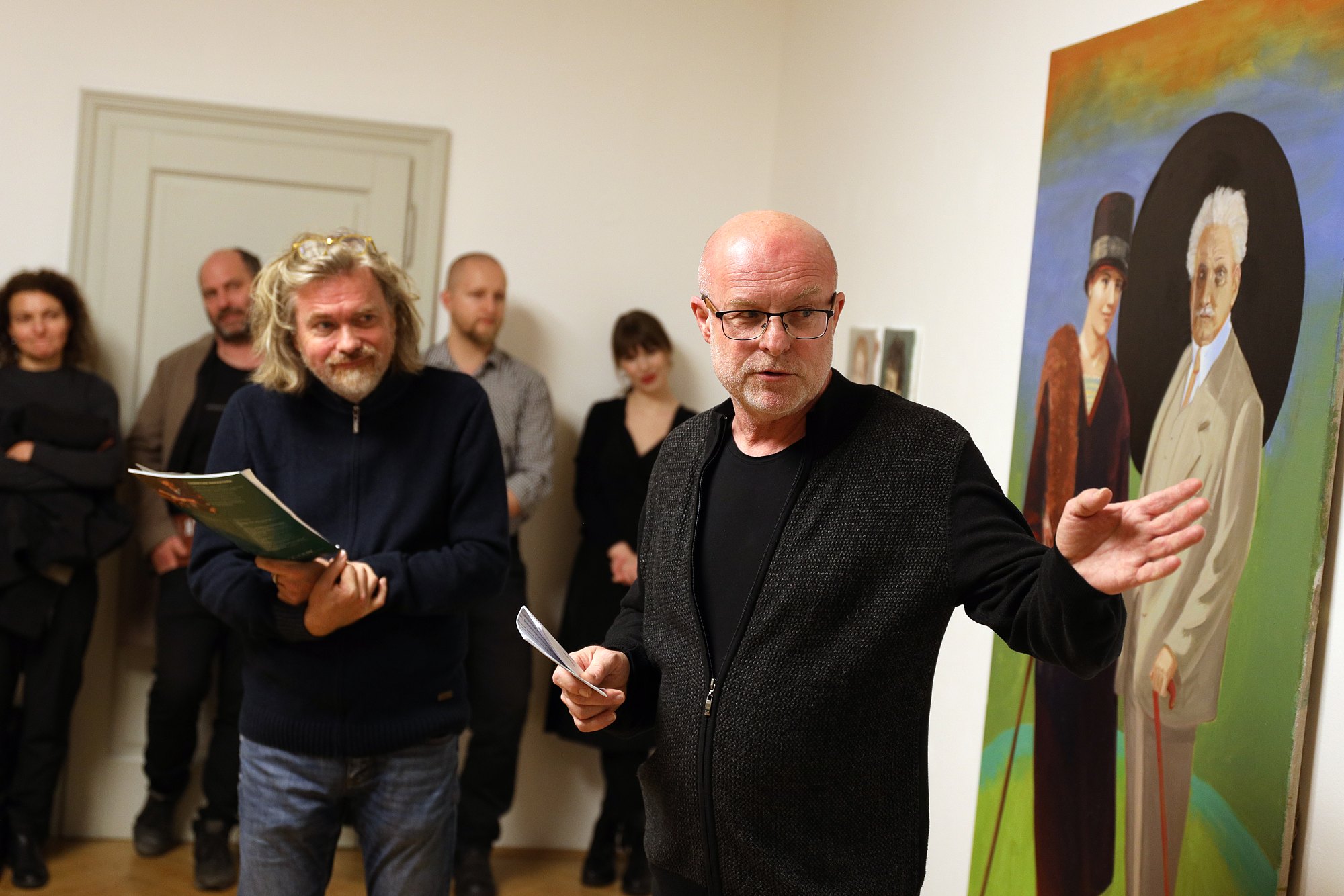 Výstavu zahájili její kurátoři Jiří Zahrádka a Pavel Hayek.