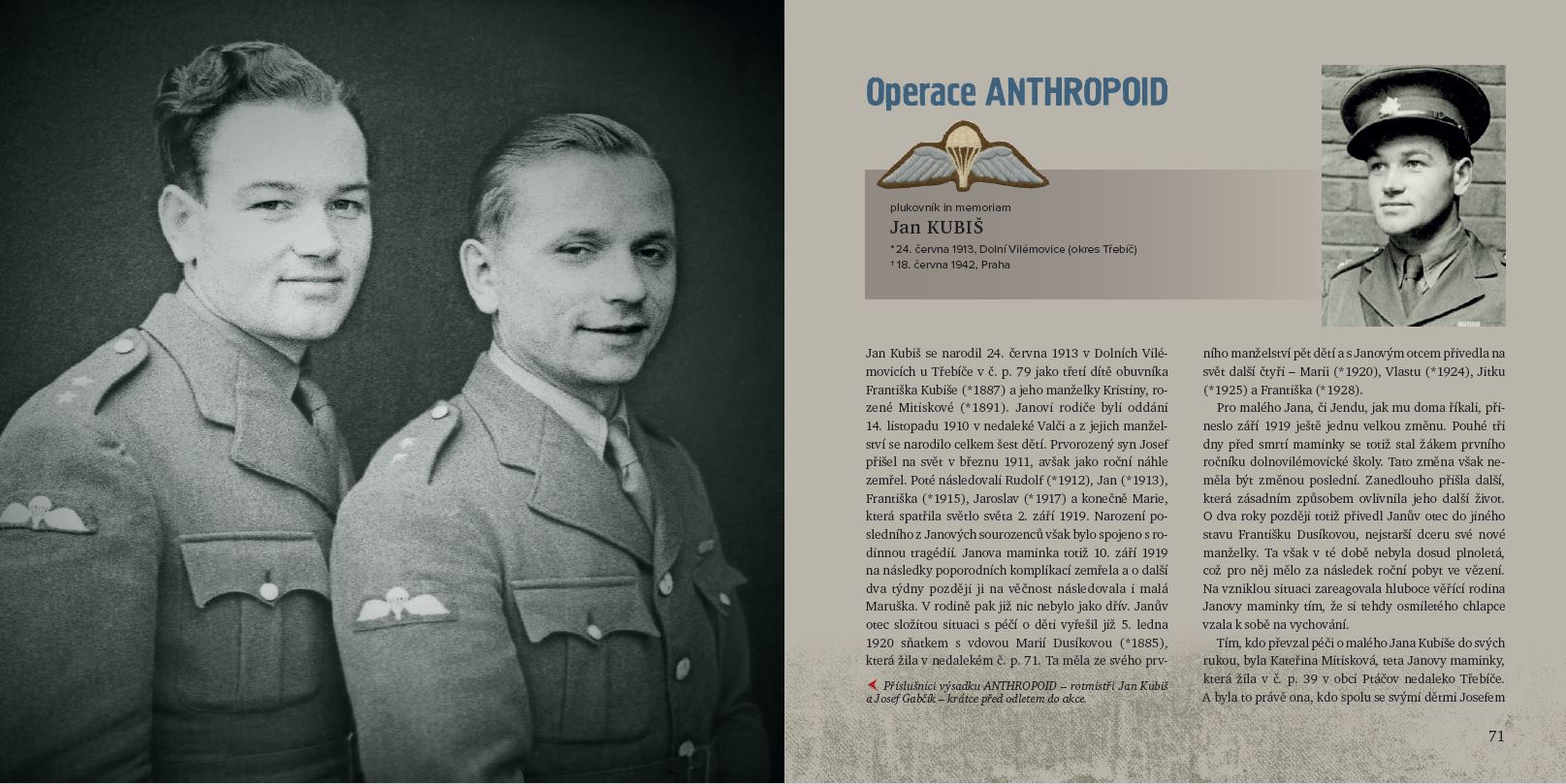 Tři historici spjatí s Historickým oddělením MZM, Jan Břečka, Lukáš Lexa a Jiří Mikulka, společně s ředitelem Památníku Lidice Eduardem Stehlíkem a dlouholetým brněnským badatelem Petrem Kopečným v nové knize S padákem nad hlavou: Jan Kubiš a ti druzí přináší biografické medailonky známých i zapomínaných odbojářů z Vysočiny, kteří během druhé světové války prošli v rámci československé zahraniční armády na Západě parašutistickým výcvikem a kurzem útočného boje.