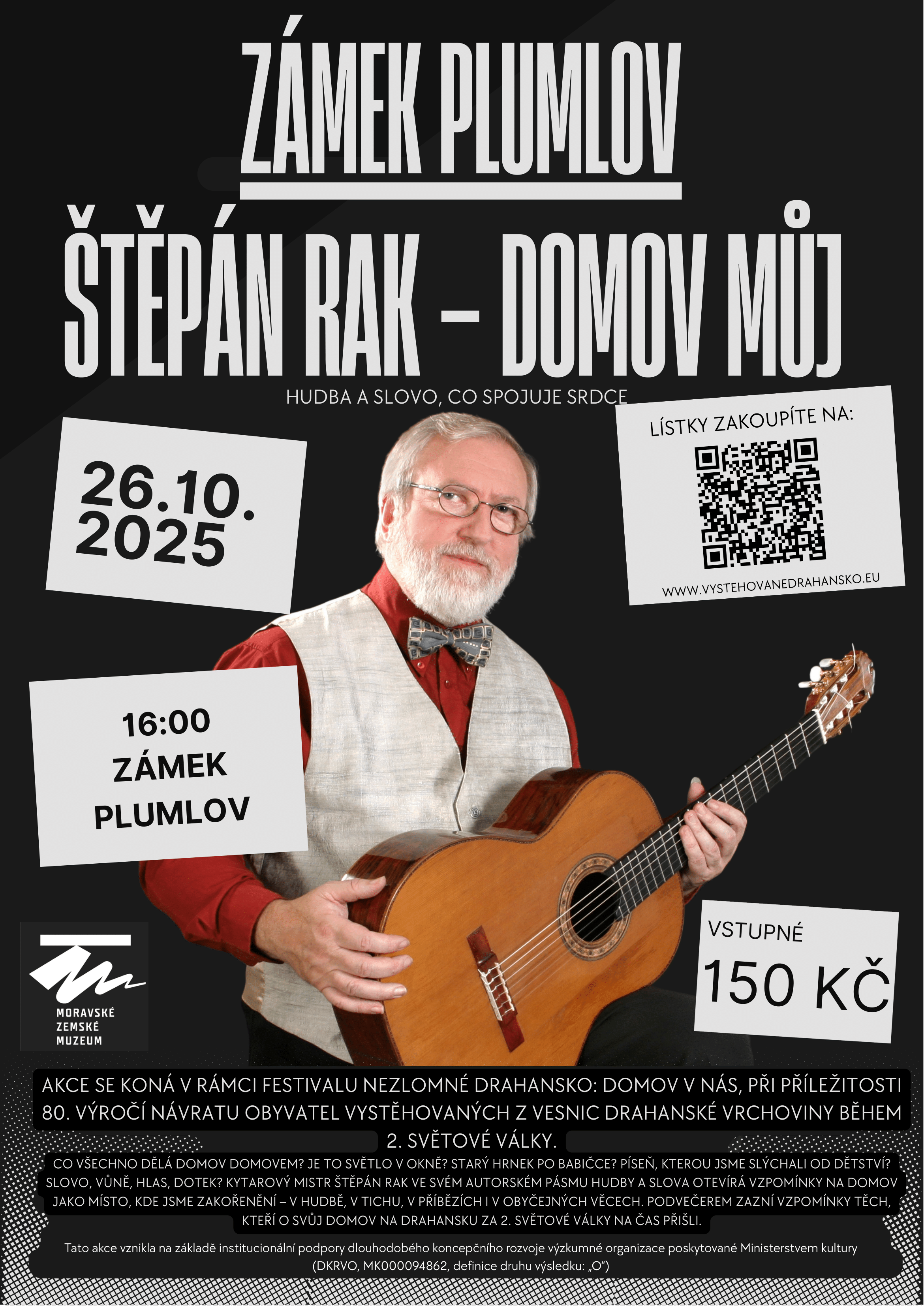 Zveme Vás na koncert kytarového mistra Štěpána Raka, který ve svém autorském pásmu hudby a slova otevírá vzpomínky na domov jako místo, kde jsme zakořenění.