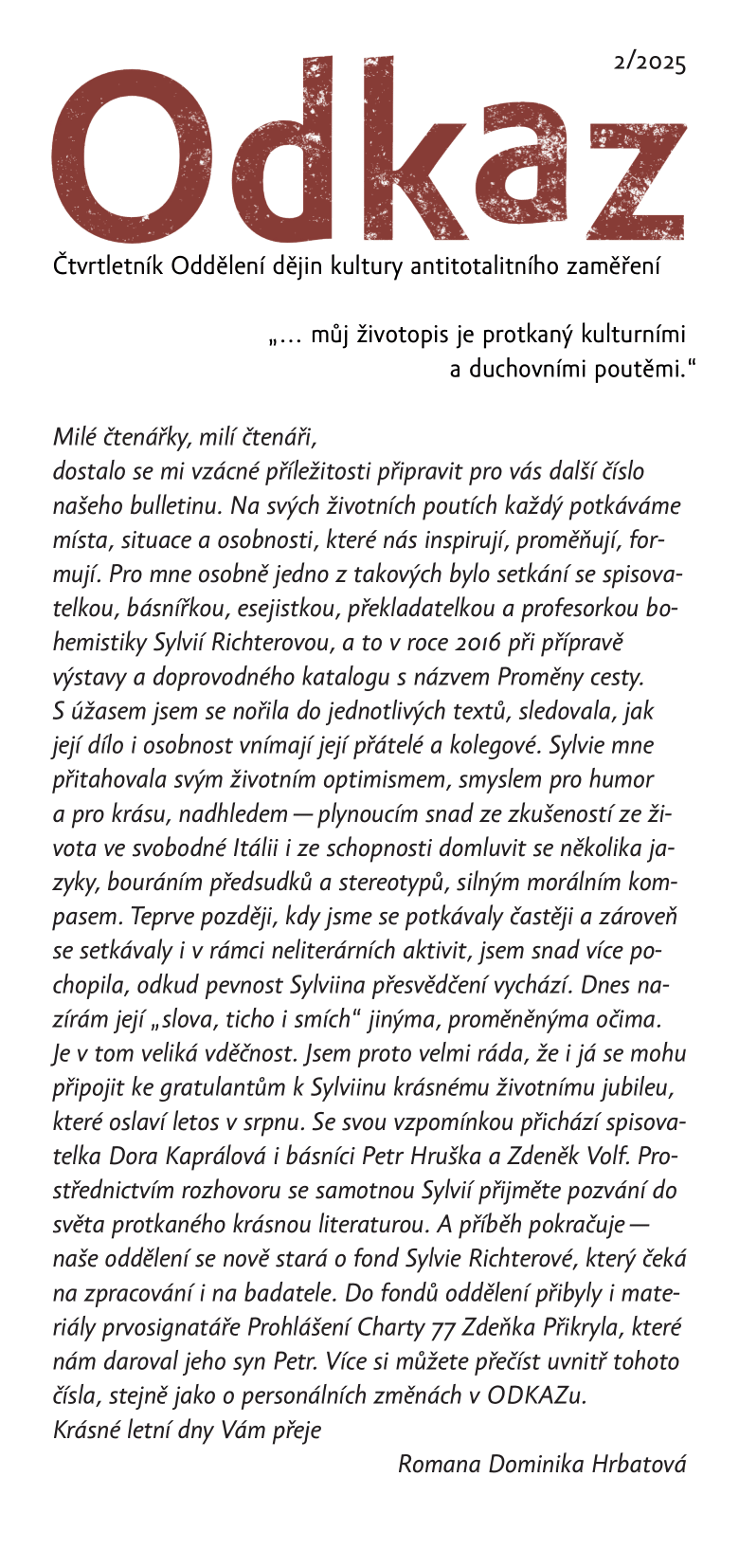 ODKAZ 2/25 – čtvrtletník Oddělení dějin kultury antitotalitního zaměření