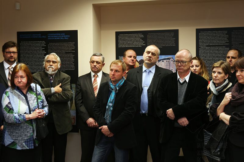 In 863, i.e. 1150 years ago, a Byzantine mission reached Rostislav´s Moravia; it was headed by Constantine the Philosopher, an important personality of the then Christian world, who was accompanied by his brother Methodius and a group of disciples. They came to spread the Word of God in a language understandable to the inhabitants of Moravia that is called today Old Slavonic, its written form in Glagolitic scripture was created by Constantine. The lives of the brothers from Thessaloniki and their continuation in the history of the „Holy Church of Moravia“ under the archbishop Methodius as well as a short presentation of the situation in Moravia before the arrival of the learned Byzantines at the court of prince Rostislav, all this are themes briefly and schematically dealt with in the first exhibition presented in the new „Centre for Slavonic archaeology“ in Uherské Hradiště. Part of the exhibition are large format models showing the probable situation of the sacral centre of Great Moravia in Uherské Hradiště-Sady on Methodius´ Hill in the period when the centre of the „Holy Moravian Church“ was seated there, and the appearance of the still less known power centre in Veligrad situated on the territory of the today cemetery in Staré Město the part of which was also a rotunda standing in the 9th century on the place of the today St. Michaelis the Archangel church. The famous „Fakes from Stupava“, alleged grave stones of St. Methodius uncovered by K. Maštalířová in Chřiby hills near Stupava or fragments of mortar floors discovered in the 1950s during the excavation of the early medieval St. John church in Modrá bei Velehrad are also on display. Interesting are two globular silver earrings decorated with granulation and discovered in October 2013 in Staré Město „Na Vyhlídce“ that represent the recently found jewels, exhibited for the first time, that belong to the group of sumptuous Veligrad jewels from the Great Moravian period. Besides them the visitors can see very well done replicas of shoes of social and ecclesiastic elite as well as replicas of richly decorated spurs and belts having belonged to Great Moravian magnates; in both cases the items come from workshops of top makers and restorers.