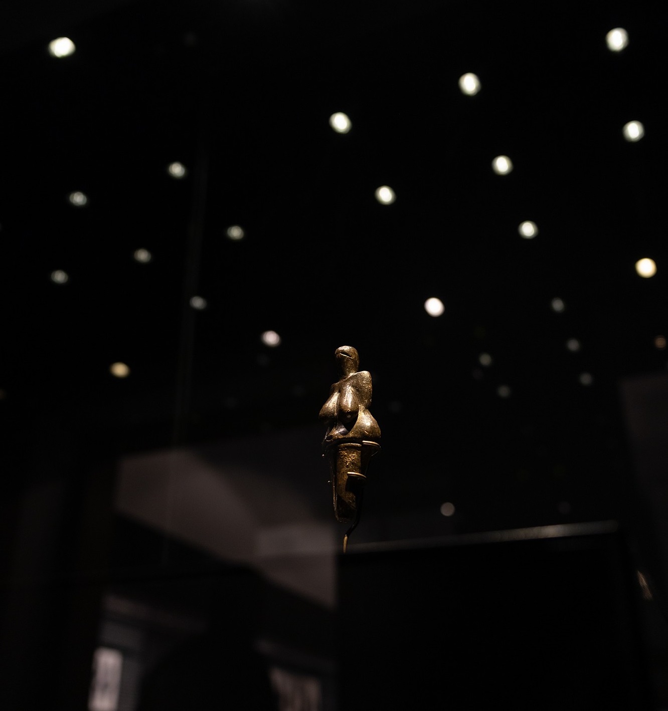 Dominantou výstavy bude originál Věstonické venuše, kterou tentokrát chceme ukázat ze všech stran. Proto je umístěna do speciálního držáku, aby mohla stát vzpřímeně, a díky mechanickému stolku se bude v bezpečnostní vitríně otáčet kolem své osy. Snadno tak bude možné si prohlédnout vpichy na hlavě, tvarování zad a snad i otisk prstu dítěte, který se na zádech dochoval.