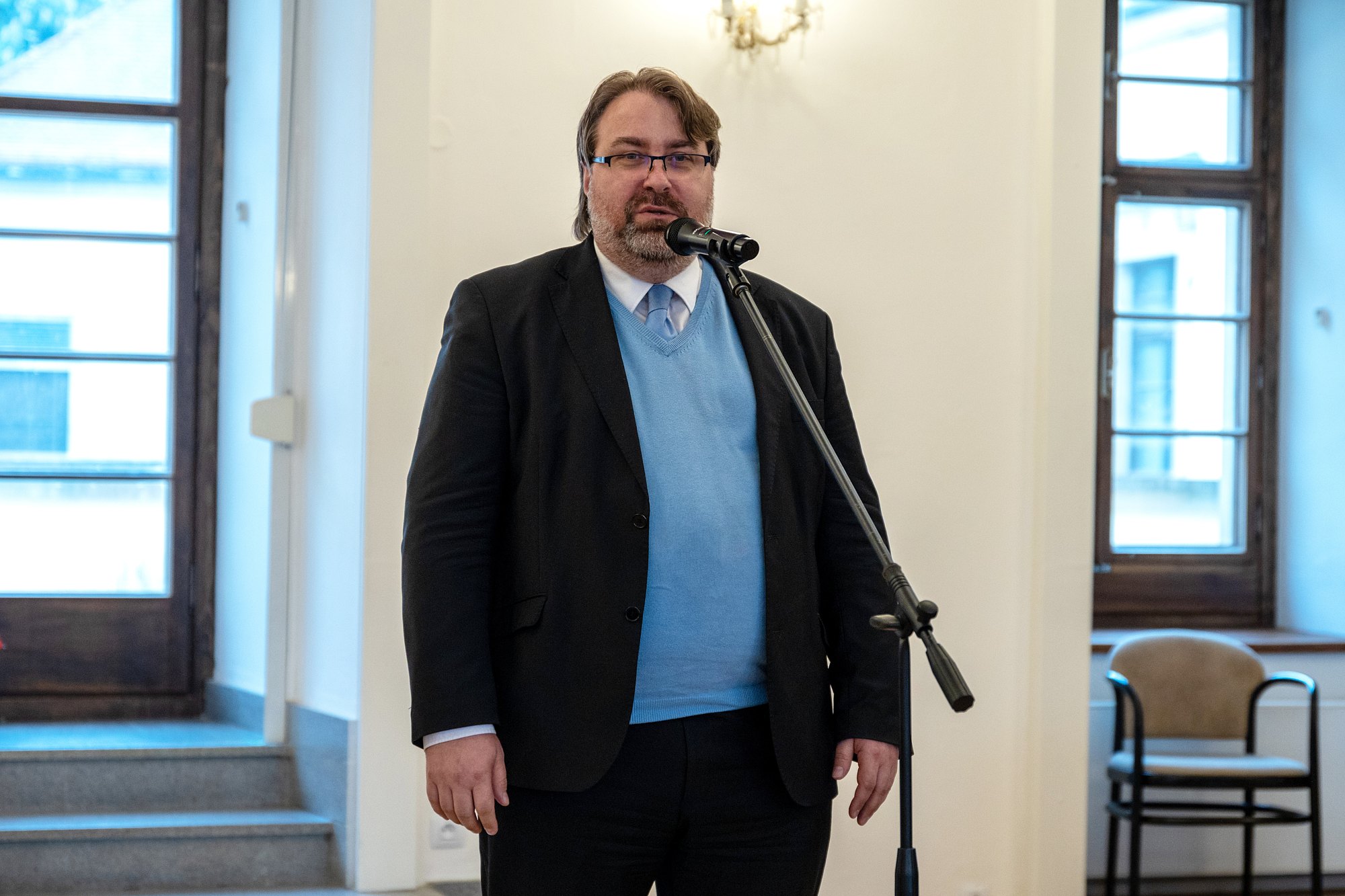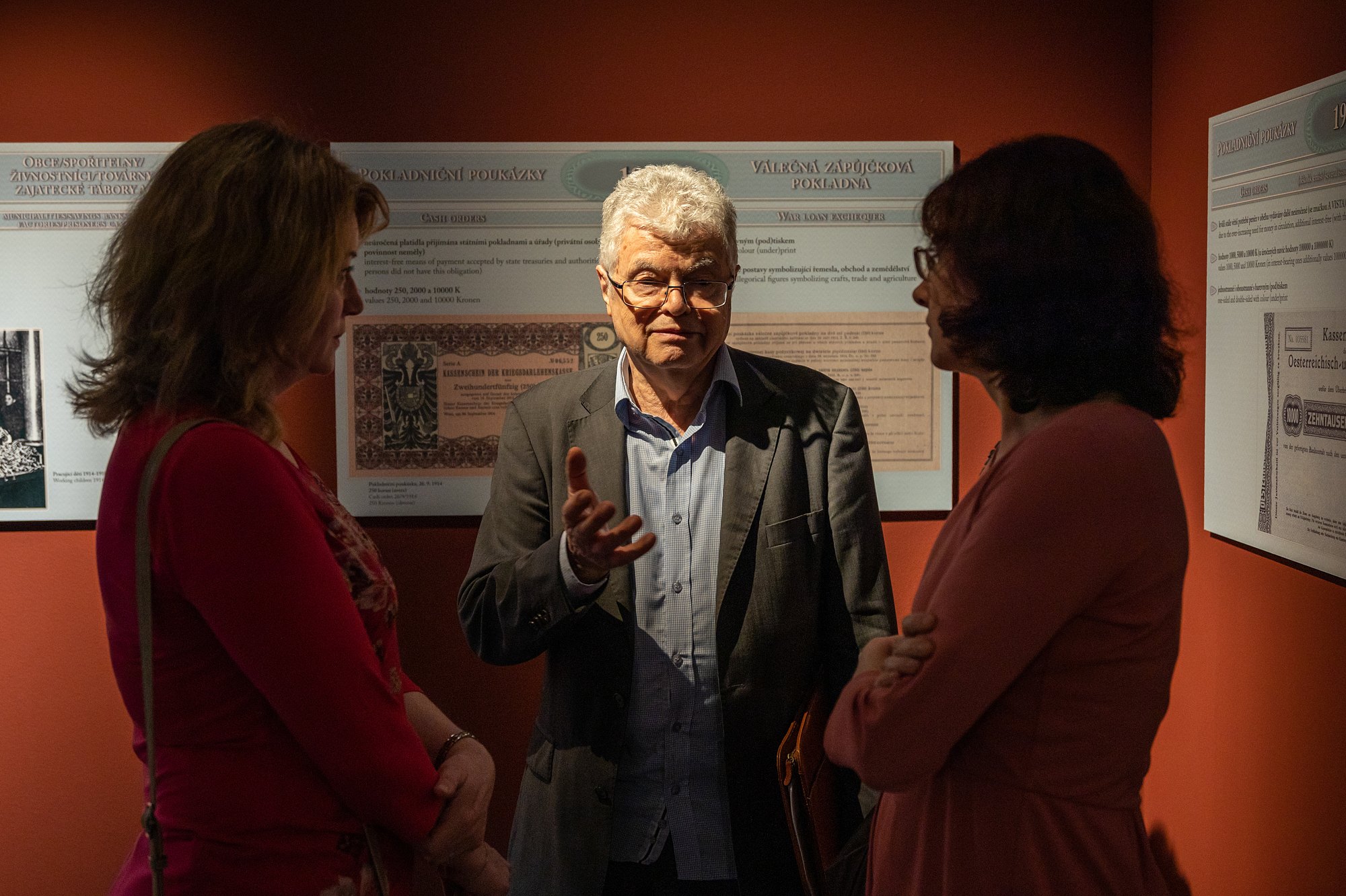 Na vernisáži výstavy A již Marie Terezie... papírová platidla v habsburské monarchii (1759-1918) promluvili kurátoři Mgr. Martina Kvardová a Ing. Vladimír Filip.