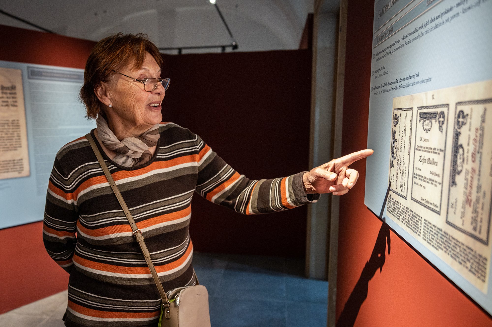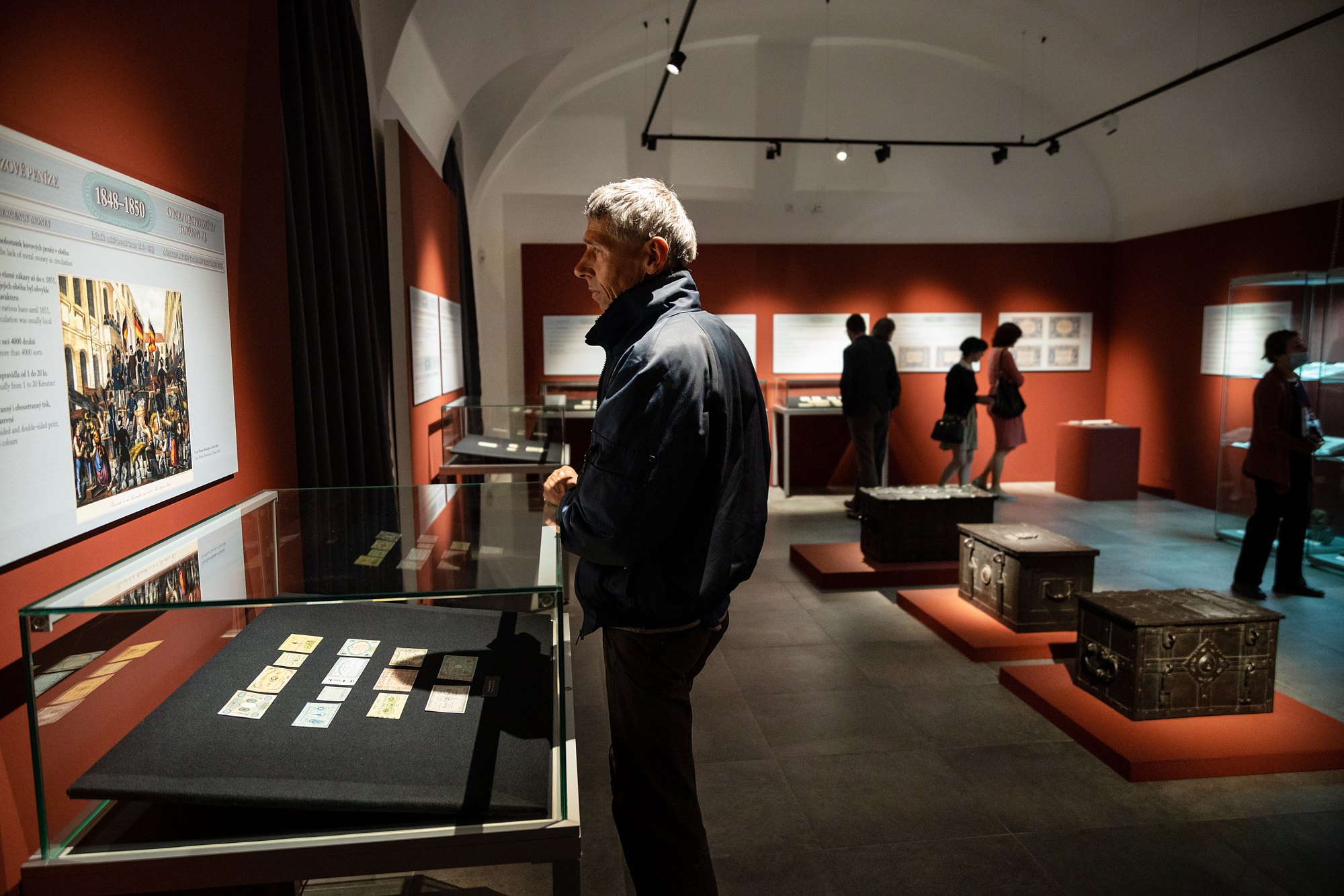 První návštěvníci výstavy se měli možnost seznámit s nejrůznějšími druhy papírových platidel (bankocetle, bankovky, státovky, nouzové peníze, obligace aj.), jež se na území habsburské monarchie používaly od doby vlády Marie Terezie až do zániku Rakouska-Uherska.