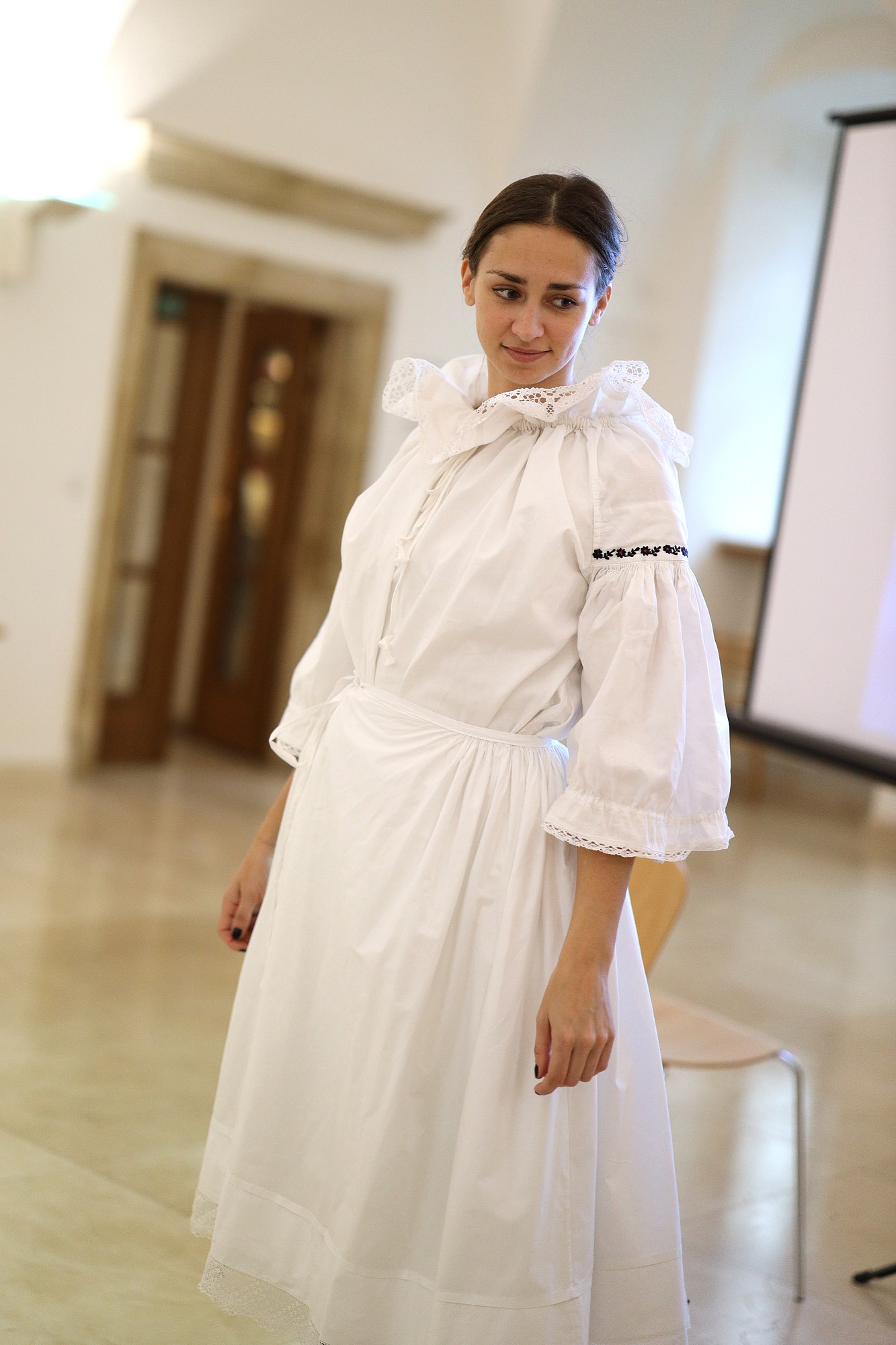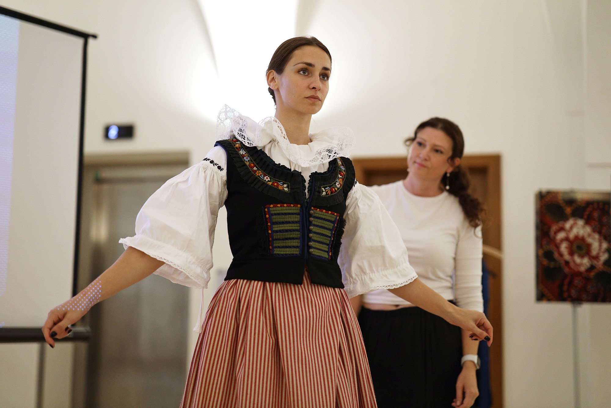 Představení rekonstrukce tradičního oděvu z Hanáckého Slovácka z poloviny 19. století. Autorkou rekonstrukce je restaurátorka a výtvarnice Yveta Petrásková z Bořetic. Prezentaci realizovaly pracovnice Etnografického ústavu MZM Barbora Orságová, Šárka Prokešová a Gabriela Rožková.