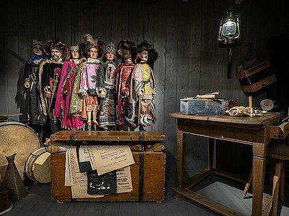 Expozice představuje tradiční české loutkářství prostřednictvím rozsáhlé sbírky Moravského zemského muzea. Nabízí typické loutky, dekorace, divadla a jiné dokumenty v kontextu s jejich divadelní funkci a dobovým milieu. Přibližuje sociální původ, společenské postavení a zázemí tvůrců, prostředí i atmosféru produkcí, konvence scénování a také příznačný repertoár.