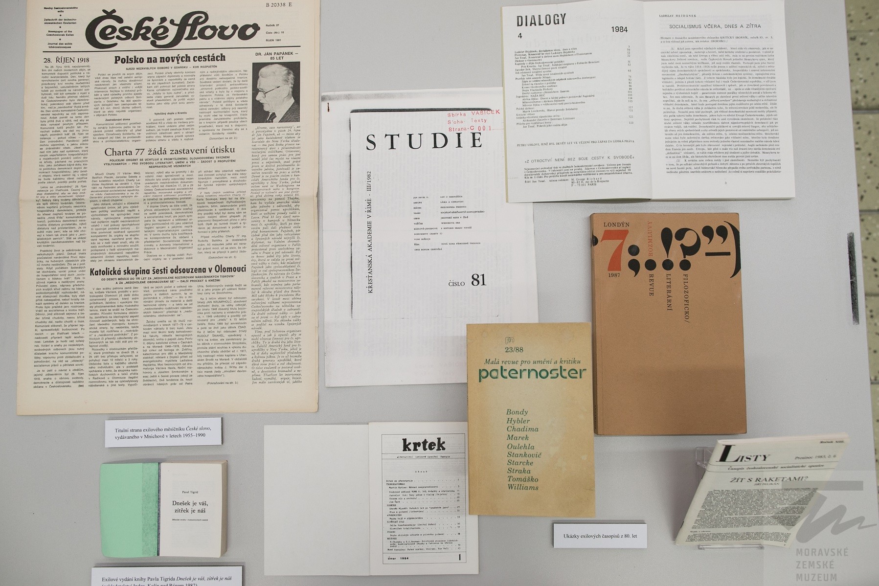 V úvodu expozice se návštěvník prostřednictvím dobových fotografií seznámí s tím, jak probíhal 21. srpen 1968 a 21. srpen 1969 v Brně. Následuje pojednání o tzv. normalizaci v československé politice a kultuře, vychází přitom z autentických dokumentů podsbírky Oddělení dějin kultury antitotalitního zaměření (ODKAZ). Vedle oficiálních historických událostí je kladen důraz především na představení nezávislých aktivit a osobností usilujících o svobodné, demokratické myšlení. Představeny jsou samizdatové knižní edice, nechybí ukázky exilových periodik a nastínění osudu některých spisovatelů, kteří byli nuceni odejít za hranice Československa. Návštěvník expozice se seznámí s velmi významnou kapitolou protitotalitního odporu - podzemními (bytovými) semináři, které se vedle Prahy pořádaly také v Brně a Bratislavě, a roli Vzdělávací nadace Jana Husa, jejíž podíl na chodu podzemní univerzity byl klíčový. Prostor je věnován též pojednání o Chartě 77 a dalších opozičních iniciativách, soustředěných zejména na Moravě. Expozice se uzavírá vylíčením listopadových událostí roku 1989 v Brně.