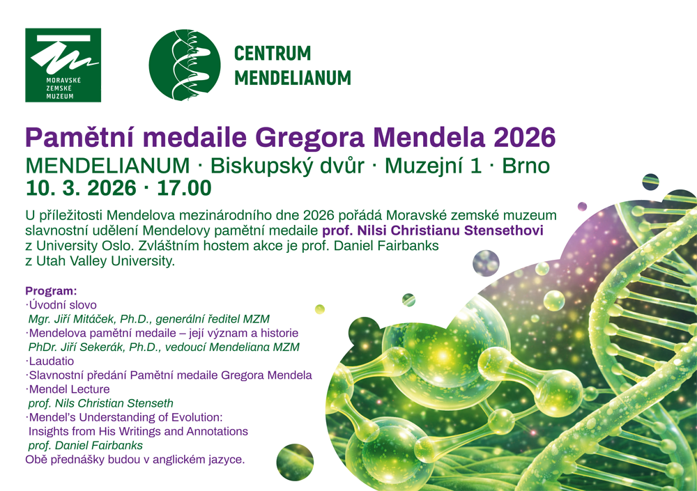 U příležitosti oslav Mendel Day 2026 pořádá Moravské zemské muzeum slavnostní udělení Mendelovy pamětní medaile panu prof. Nilsi Christianu Stensethovi z University Oslo v Norsku. Pamětní medaile Gregora Mendela za rok 2026 mu bude udělena za přínos ke studiu a propagaci Mendelova odkazu a jeho významu v moderní evoluční biologii.