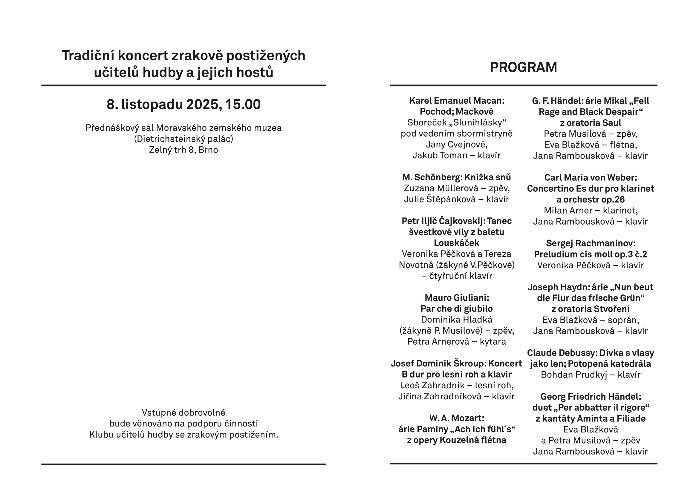 Tradiční koncert zrakově postižených učitelů hudby a jejich hostů