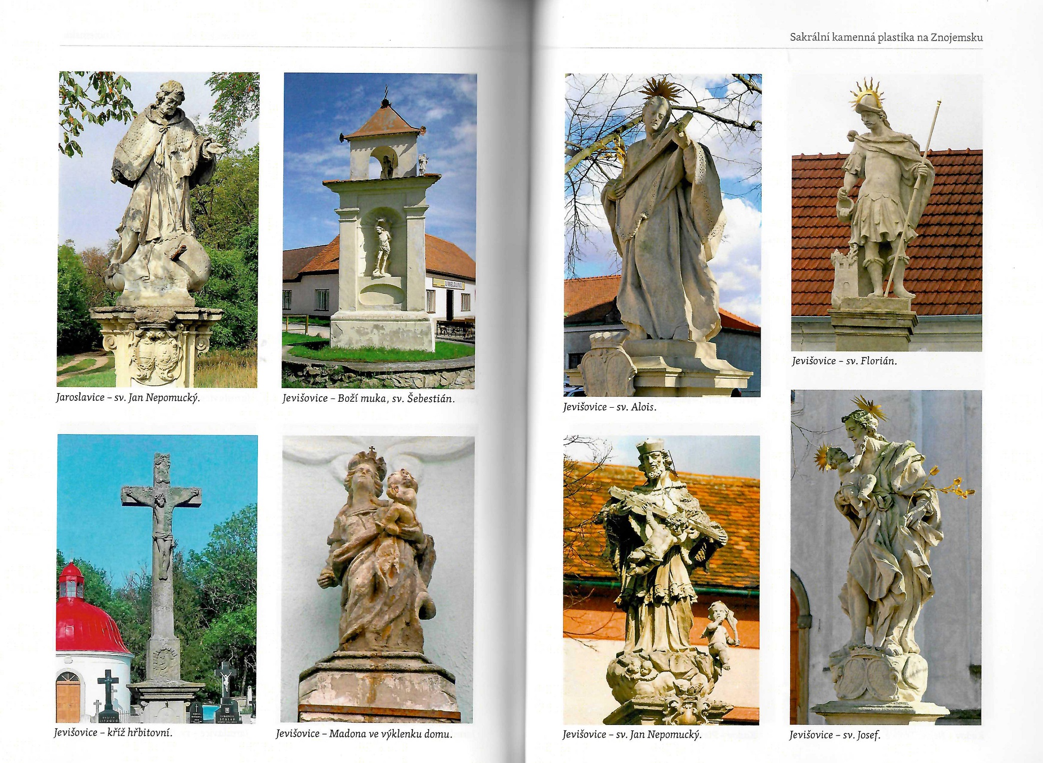Moravské zemské muzeum vydalo knihu jevišovického kastelána Jiřího Černého Sakrální kamenná plastika na Znojemsku. V podstatě jde o katalog všech kamenných soch světců na území vymezeném hranicemi okresu Znojmo. Publikace je dokumentována jak slovem, tak obrazem kamenných sochařských děl s námětem biblických a světeckých postav. Autor se v úvodní části zabývá problematikou sakrální kamenné plastiky obecně, jejím časovým vymezením, chronologickou posloupností, ikonografií a přehledem ikonografických námětů a typů. V encyklopedické části je každé jednotlivé dílo popsáno v katalogu členěném abecedně podle lokality.