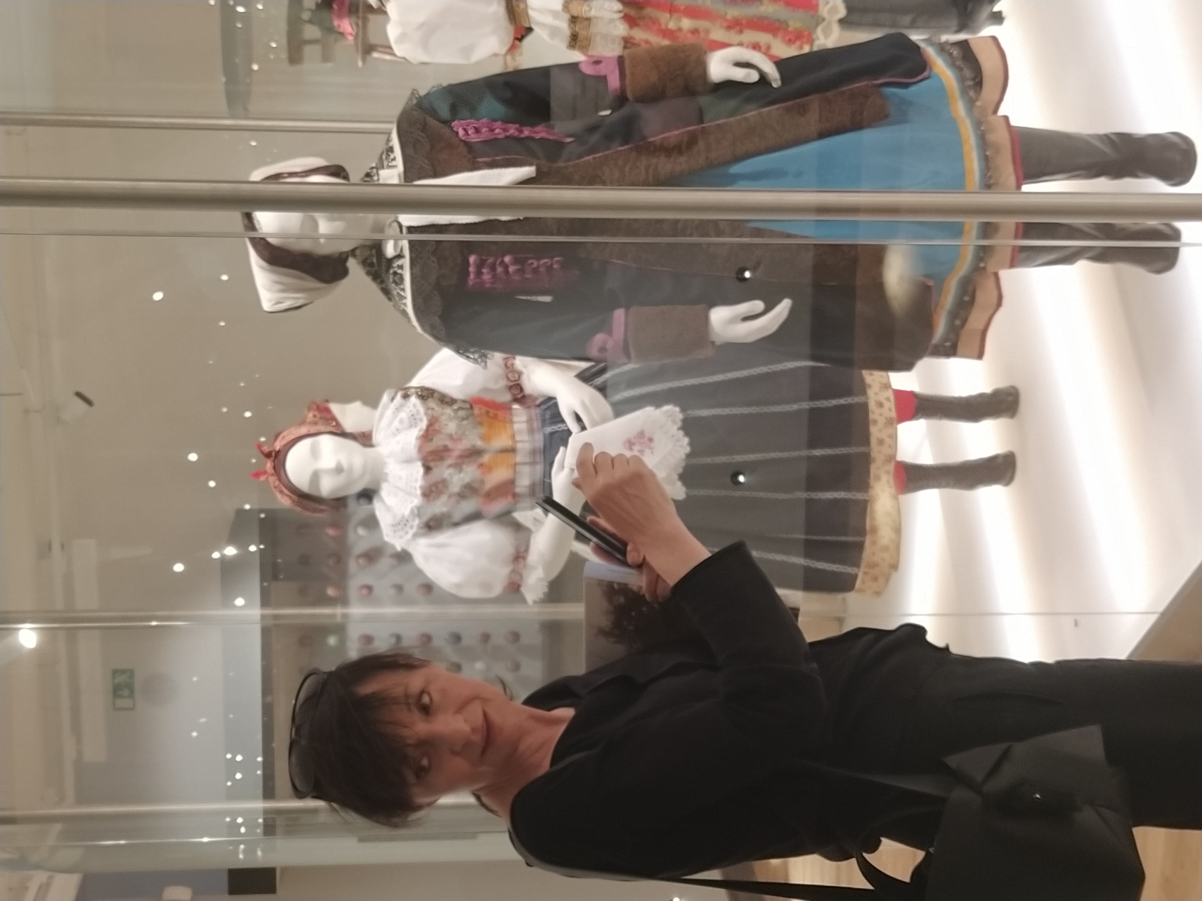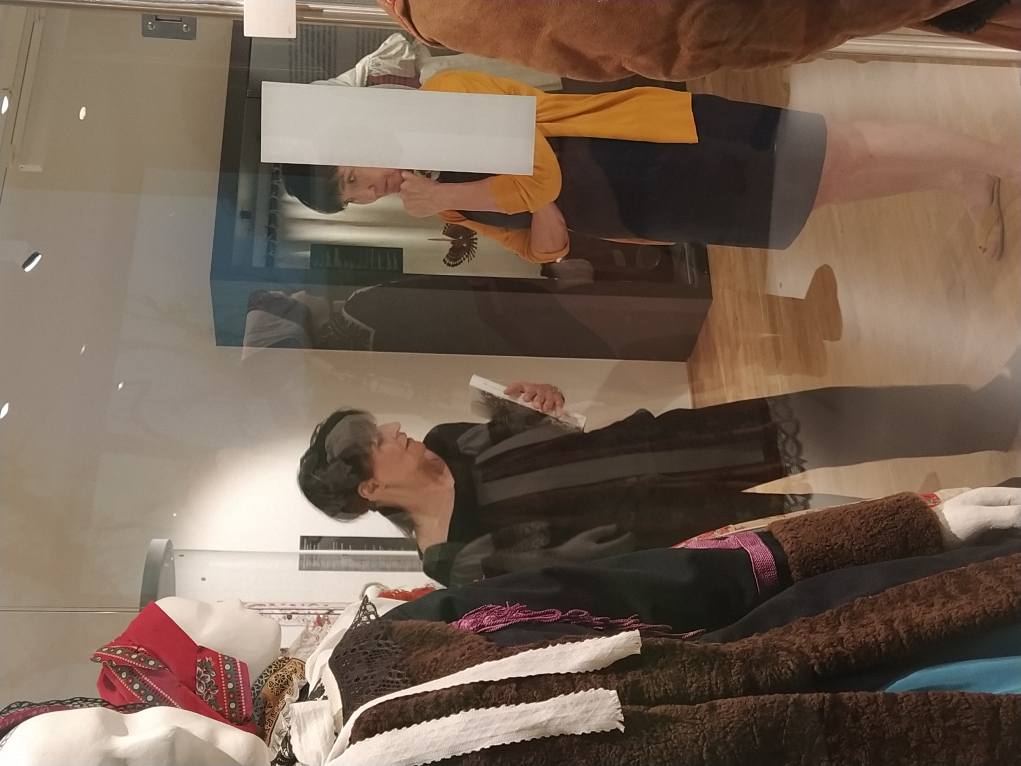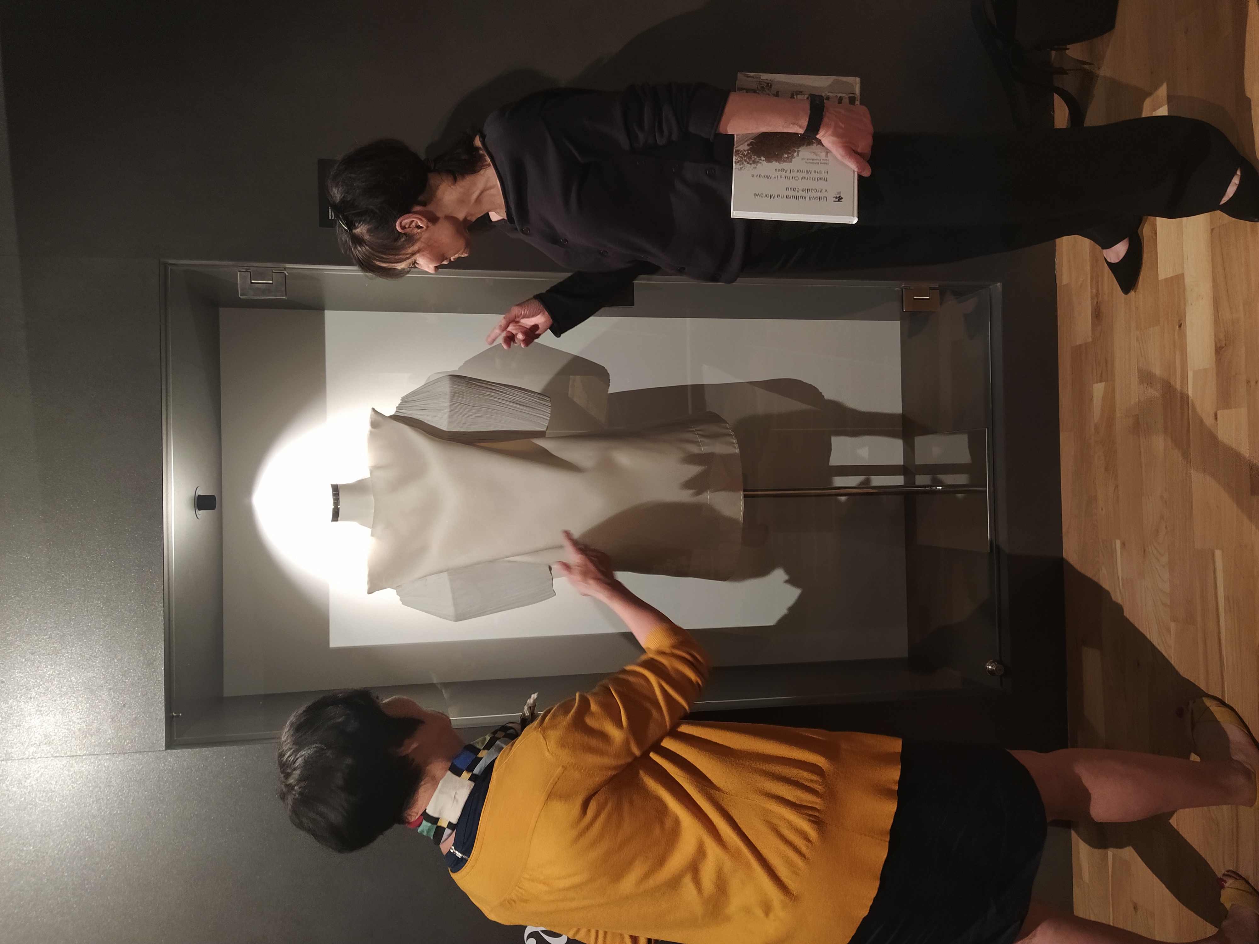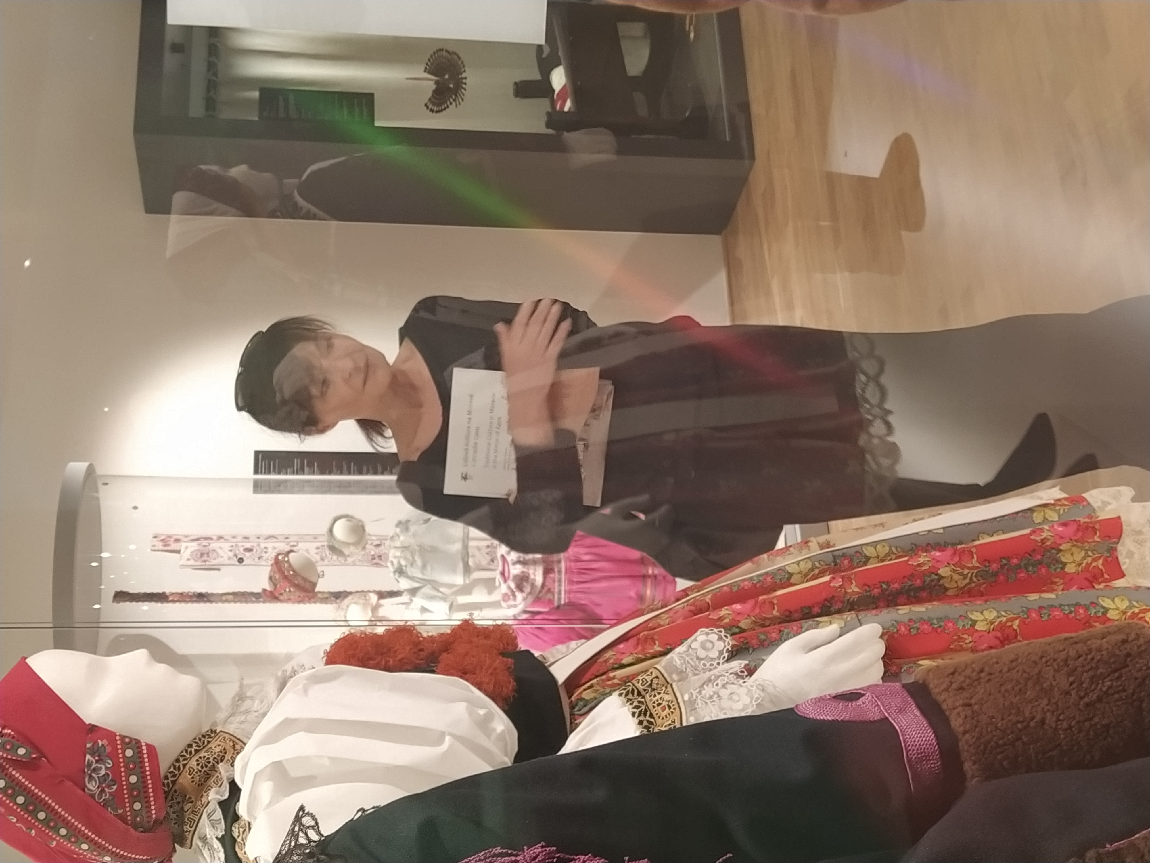 Přední česká designérka Liběna Rochová navštívila expozici Tradiční kultura na Moravě v zrcadle času a odsouhlasila instalaci svého textilního modelu MEMORY.