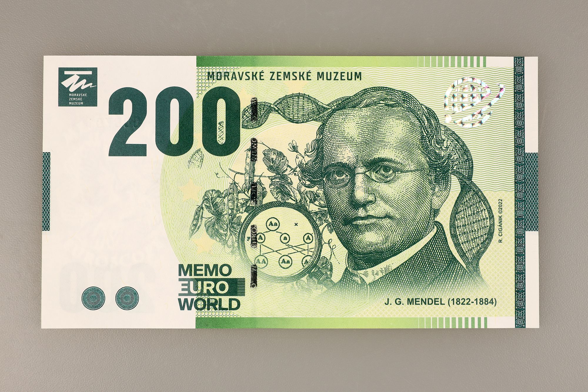 Moravské zemské muzeum vydalo v limitovaném množství unikátní pamětní bankovku s portrétem J. G. Mendela s nominální hodnotou nula euro. Bankovky jsou ze stoprocentního bavlněného papíru, který se používá při výrobě skutečných eurobankovek. Obsahují rovněž některé ochranné prvky jako hologram či mikrotisk. Každý kus je přitom originál, na svém povrchu nese pořadové číslo, stejně jako mají i skutečné peníze.