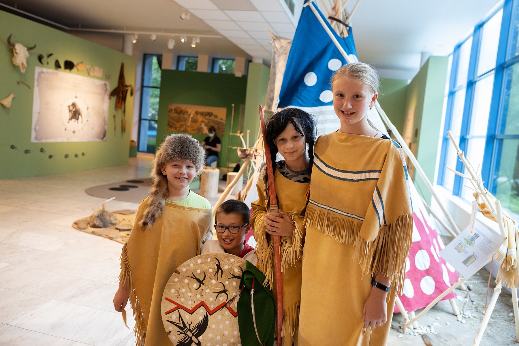 Účastníky happeningu v indiánském stylu čeká prohlídka interaktivní výstavy Óóó Indiáni, která představuje historii a kulturu původních obyvatel Severní Ameriky. K vyzkoušení budou indiánské hry a dovednosti (lov bizona, střelba z luku, překážková dráha, závody ve sběru), výtvarná a hudební dílna, ochutnávka pokrmů, vyprávění indiánských legend. Z Westernového městečka v Boskovicích dorazí, a to dokonce na koni, slavný náčelník Apačů Vinnetou. Přítomným představí práci se svými koňmi ve volnosti. A kdoví, možná s Vinnetouem dorazí i jeho krásná sestra Nšo-či...