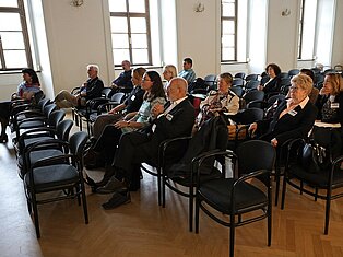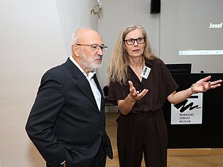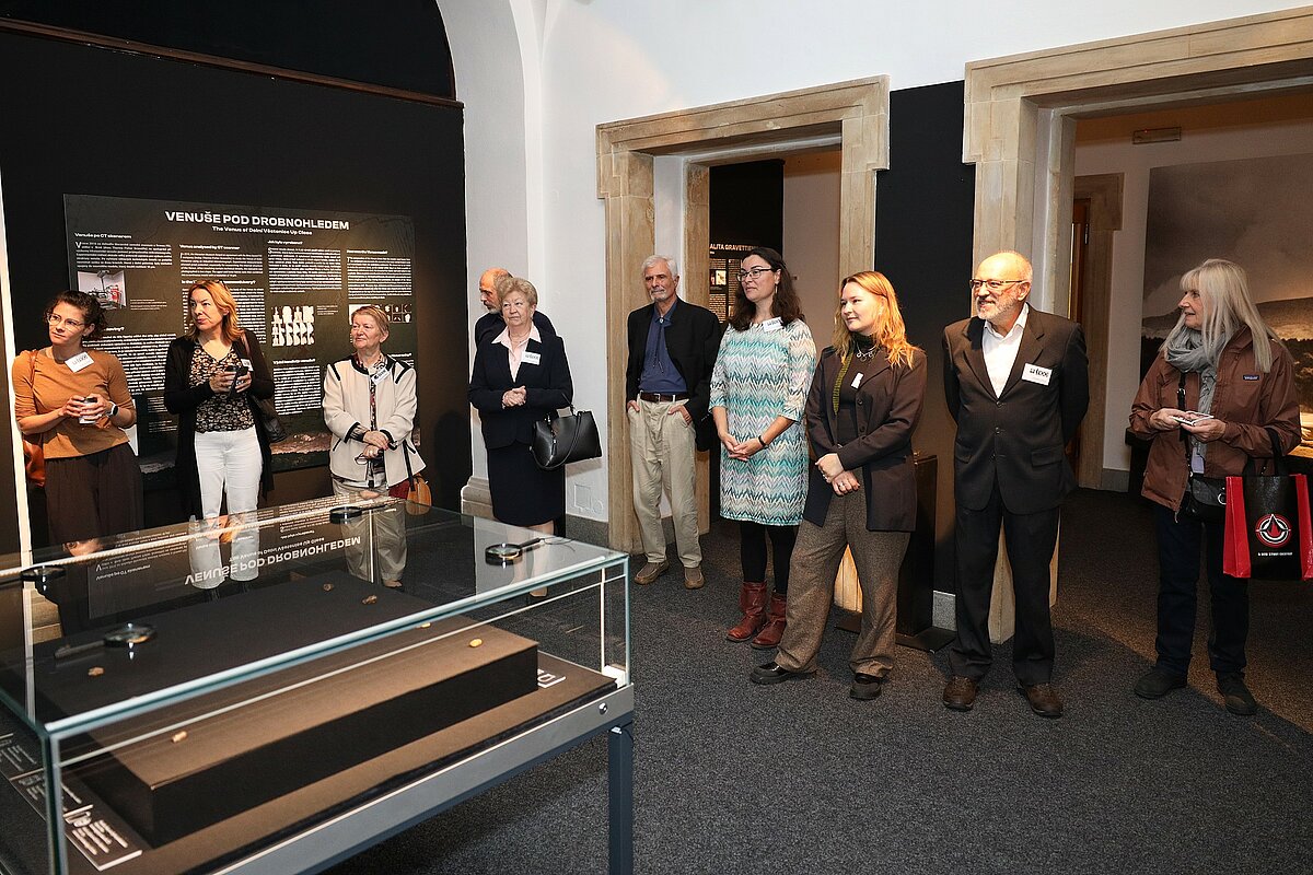 V odpoledních hodinách pak proběhl výklad na Mikulovském zámku, kde organizátorka konference Martina Lázničková-Galetová, provedla účastníky exkurze druhou částí výstavy Druhý život Věstonické venuše, která vznikla pod jejím kurátorstvím.