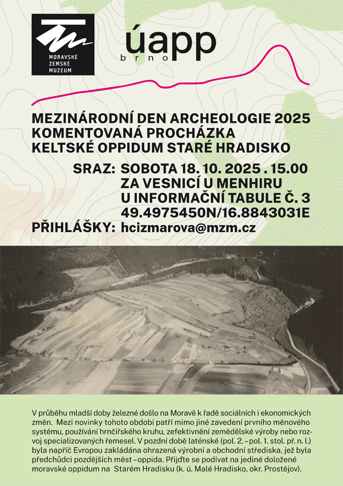 Keltské oppidum Staré Hradisko Sobota 18. 10. 2025 v 15:00 hod. Přihlášky na e-mailu hcizmarova@mzm.cz