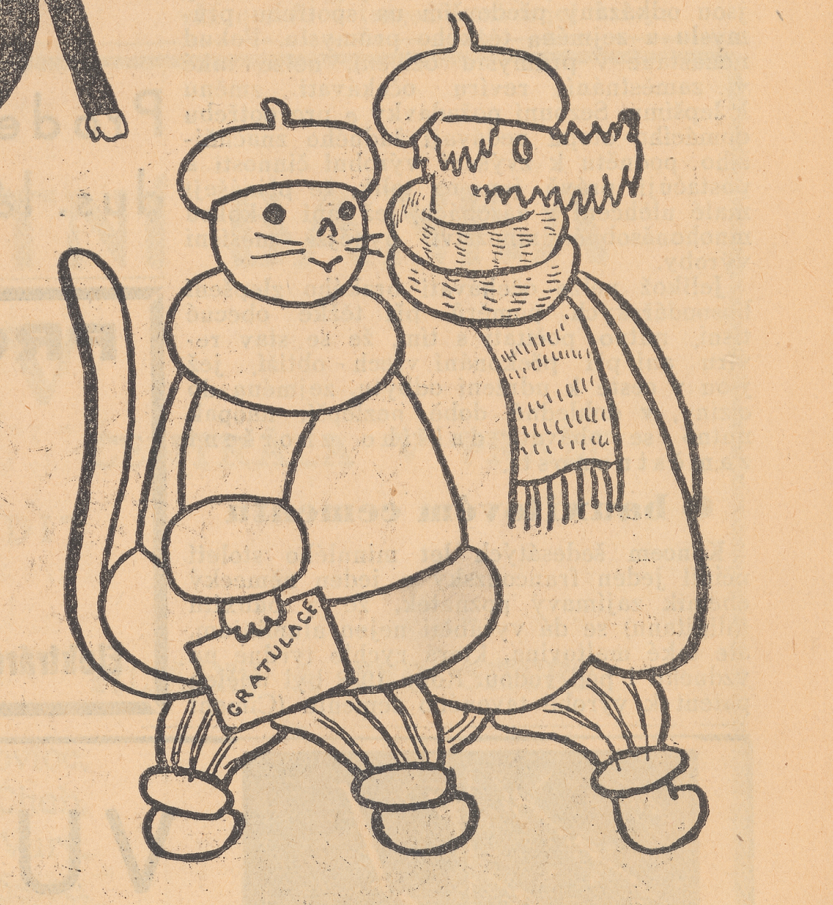 Grafik LN, malíř Eduard Milén, napodobil styl spolupracovníků listu a kresbami doprovodil jubilejní veršovánku redaktora Edvarda Valenty, který jakožto gratulanty vybral postavy z knih redaktorů a přispěvatelů LN. A my se budeme ptát na autory, názvy děl, případně další souvislosti.