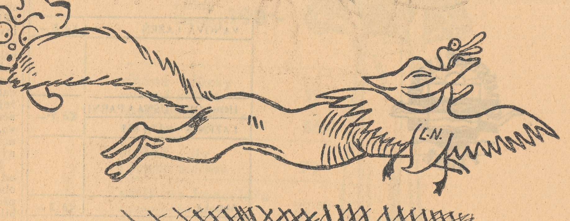 Jak vidíme, liška ulovila nějakého opeřence, a Eduard Milén na jeho tělo napsal písmena „LN“.
