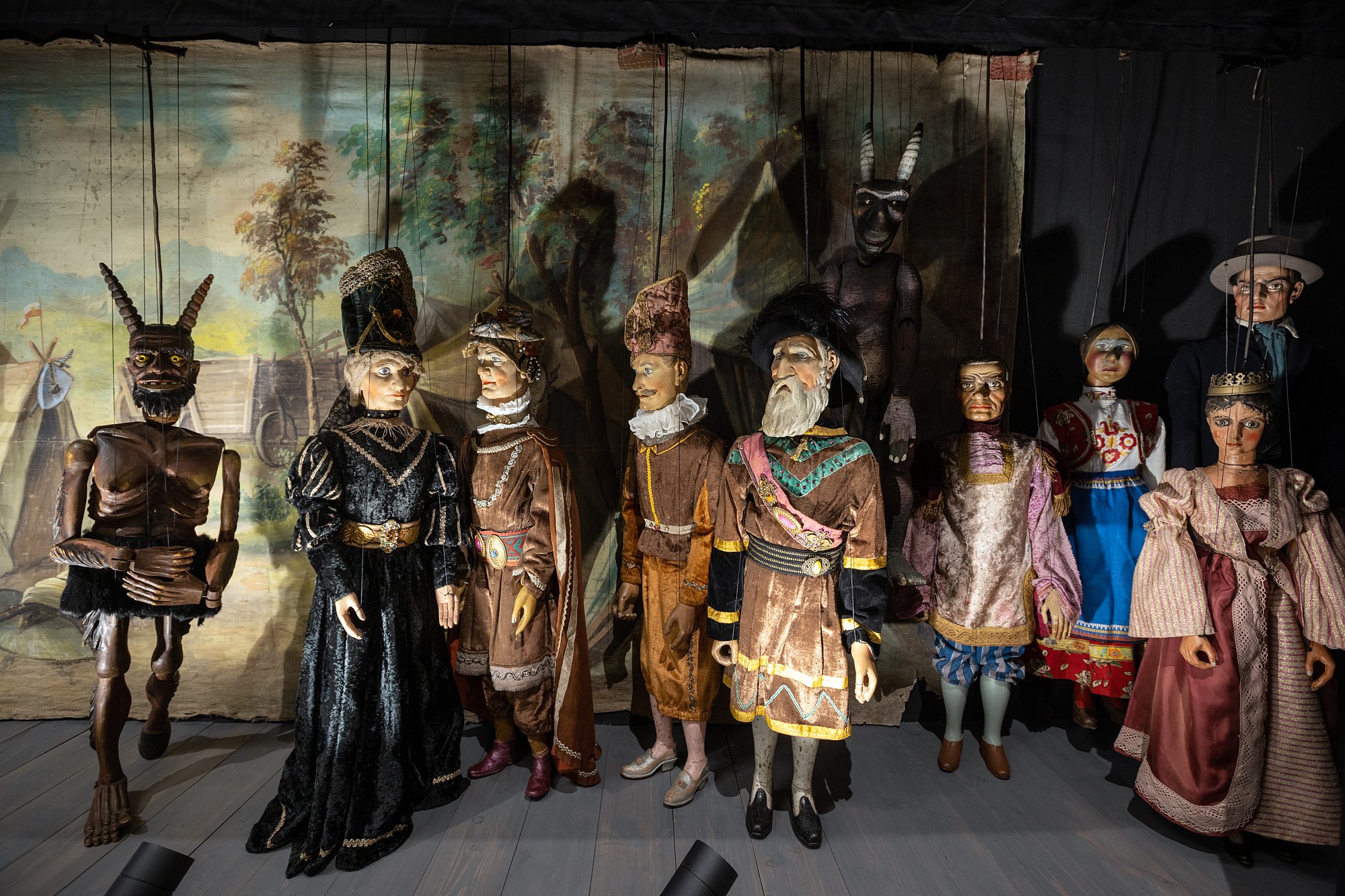 Vypravte se do světa loutek, kde se nad hlavami vznáší draci, Rusalka touží po lásce prince, Mefistofeles svádí Fausta a všechny nakonec přechytračí a rozesměje Kašpárek. Vypravte se do světa plného rytířů, čertů a dalších často překvapivých postav.