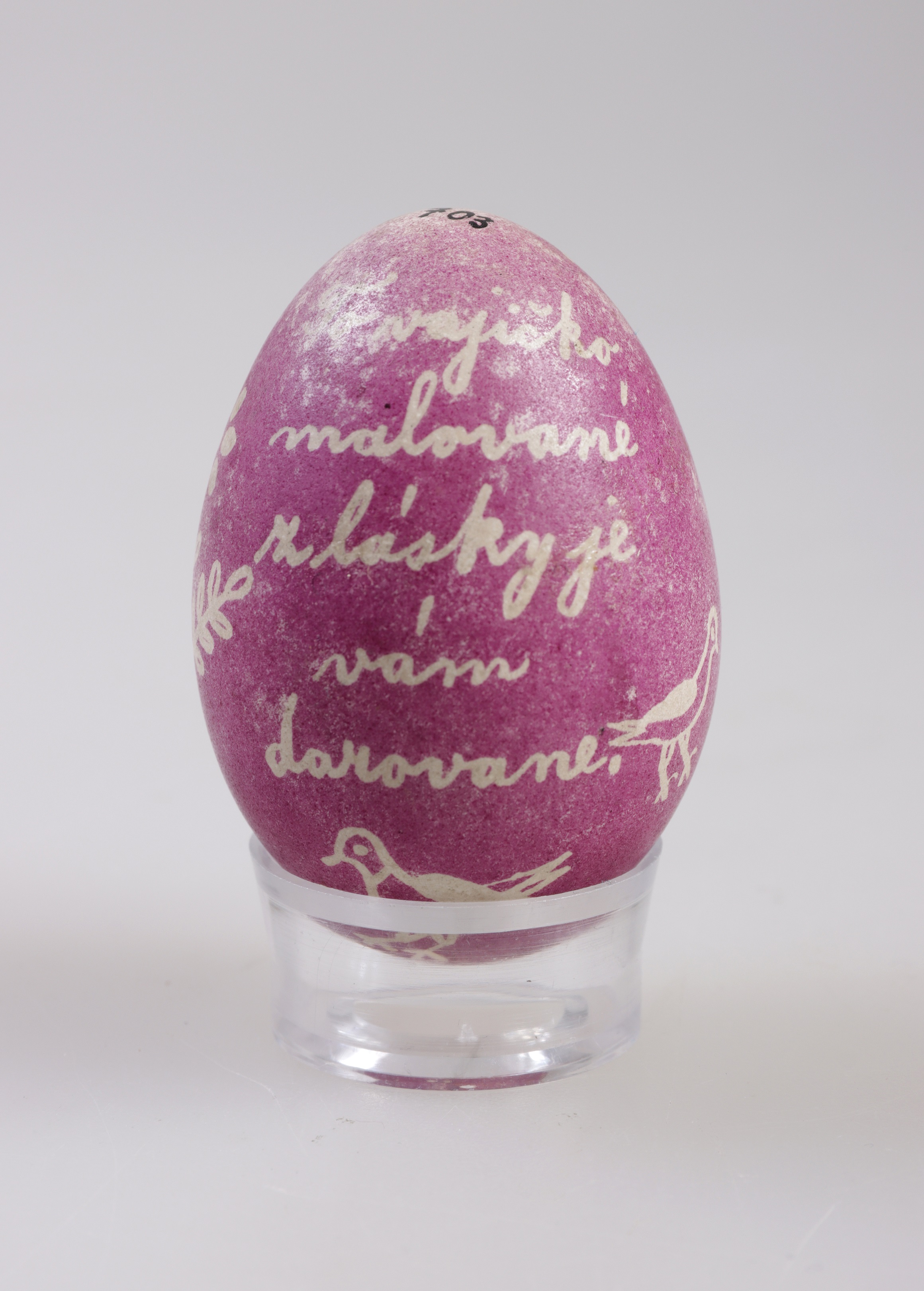 Zvyky a obyčeje spojené s velikonočním pondělím byly a stále jsou  o utváření a udržování příbuzenských a milostných vztahů. Svěcená a barvená vejce nebyla jen darovacím artiklem, ale i prostředkem komunikace. Prostřednictvím barevnosti a počtu vajec dávaly dívky najevo, co k chlapcům cítí. Svůj názor mohly také vyjádřit výjevem (srdíčko, holubičky) nebo nápisem. Od 19. století se začínají objevovat krátké texty, které měly většinou náboženský i světský charakter, např. pozdrav, jméno darující či obdarovaného, úryvek z písně nebo milostný vzkaz. Na fotografii vidíte pěkný příklad kraslice s nápisem: