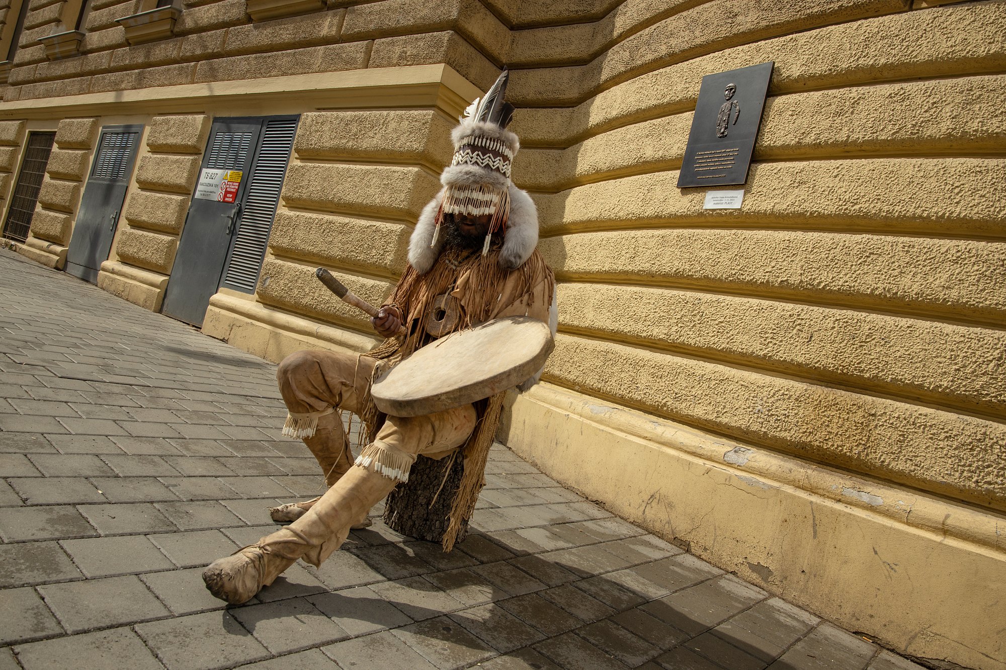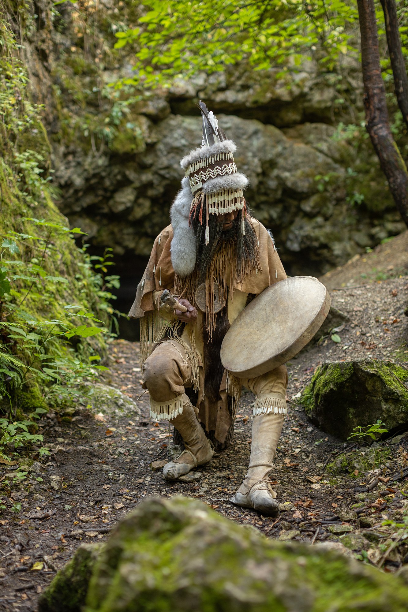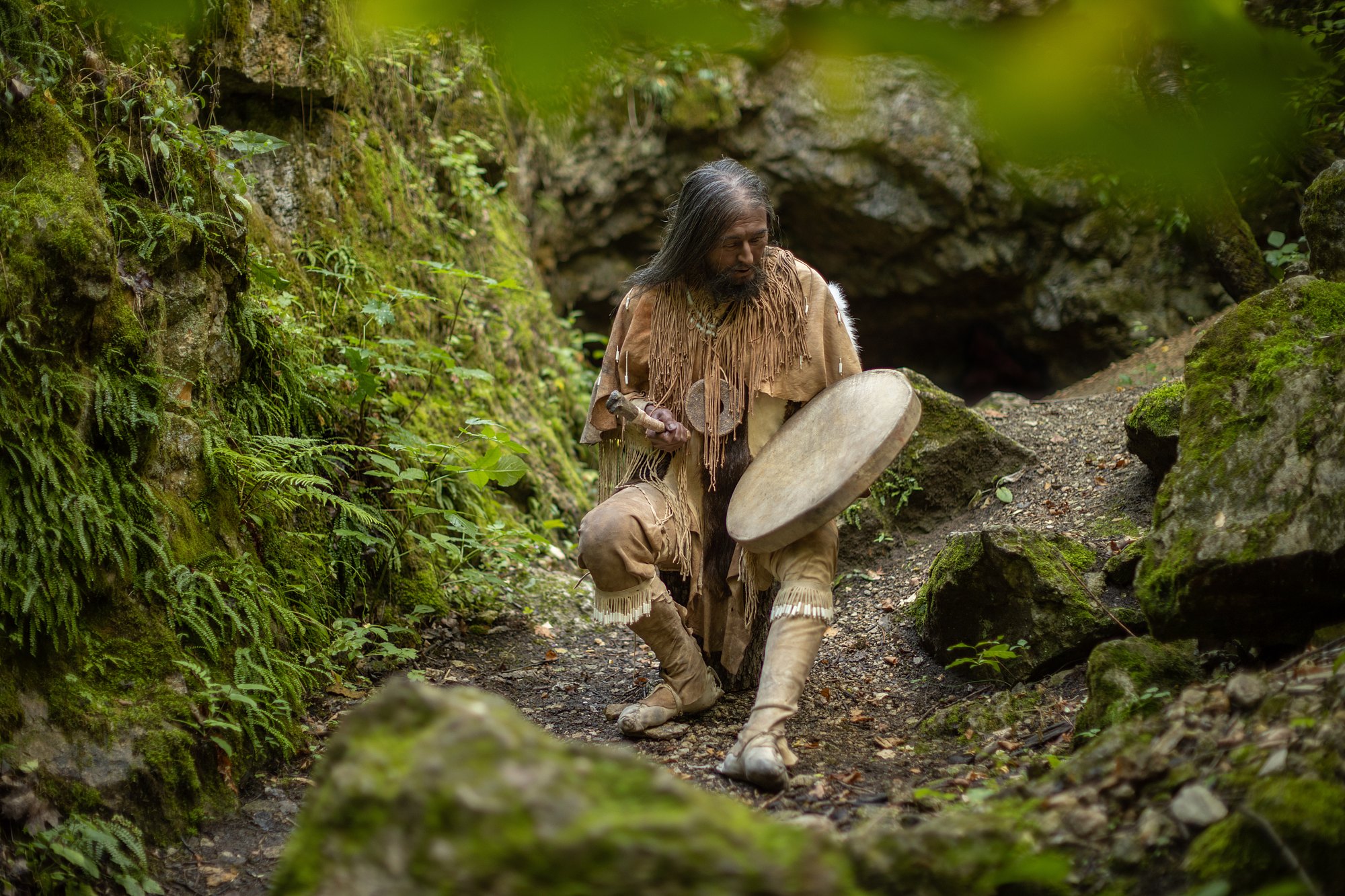 „A právě to naše rekonstrukce odráží. Obličej, jehož kostra se téměř nedochovala, jsme zastřeli provázky s ozdobami z třetihorních dentálií,“ dodává Vaníčková. A pokračuje „pokrývky hlavy jsou pro sibiřské šamany totiž typické, asi jim pomáhají navodit stav transu, stejně jako bubnování, alkohol, houby, či dým. Se sibiřskými šamany pojí rekonstruovaného muže i kotouče. Ten větší, dávno ztracený jsme vyrobili podle dochovaných údajů. Na třásně před obličejem jsme umístili řadu z nalezených dentálií, další přišly na pokrývku hlavy a na klouby, což je doloženo jak etnologicky, tak archeologicky“.