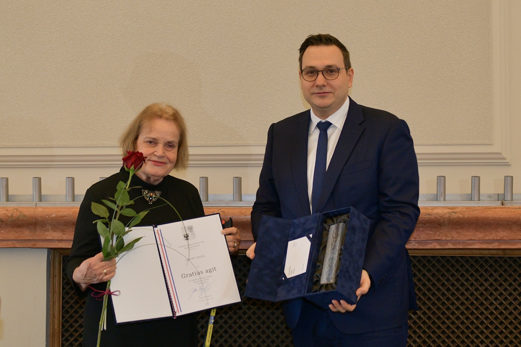 Sabine Gruša und  Außenminister Jan Lipavský bei der Übergabe des Gratias-Agit-Preises (Foto: Außenministerium der Tschechischen Republik)