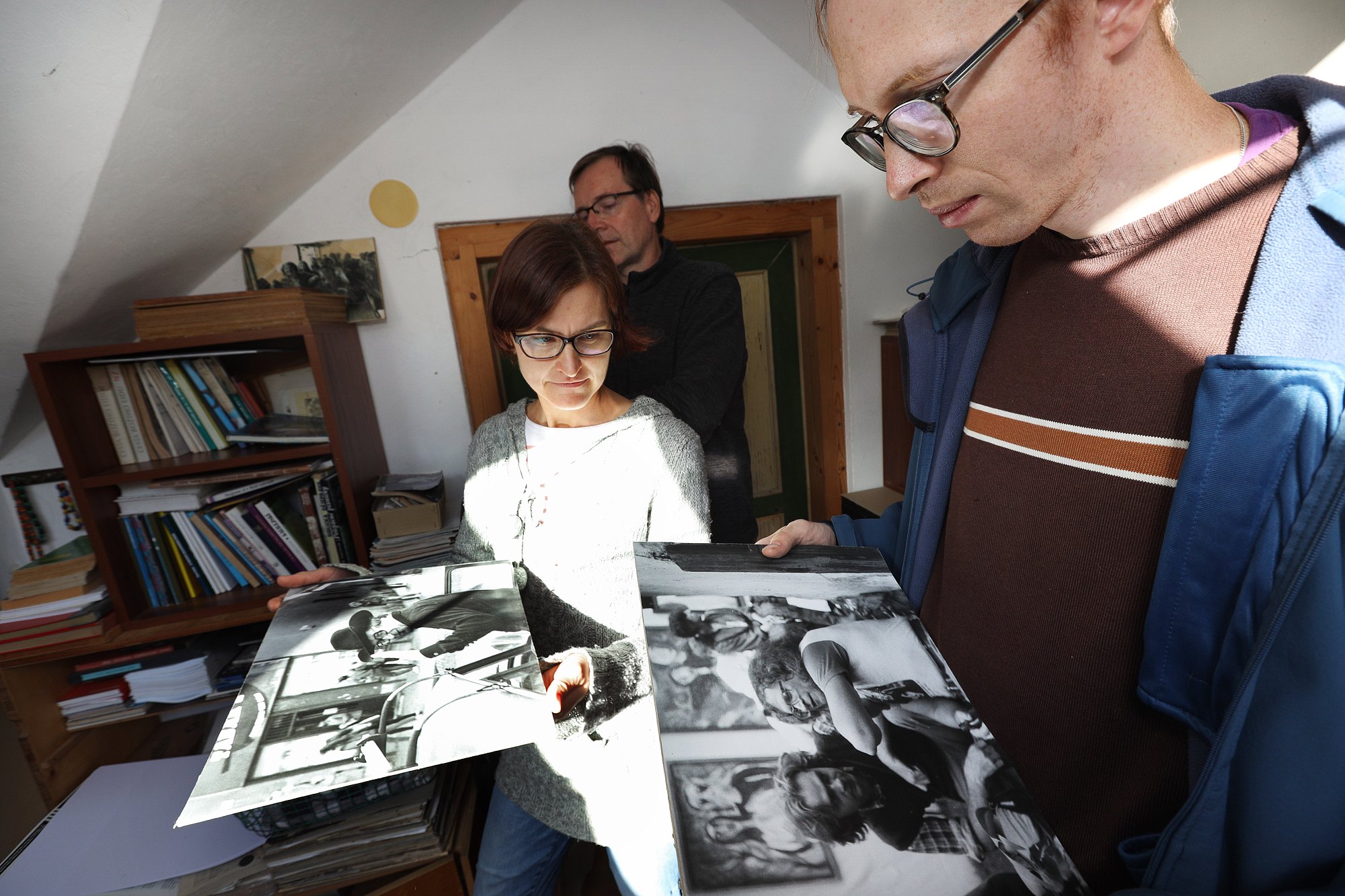 Brzy následovala od paní Procházkové nabídka, zda bychom s kolegy nechtěli jet do Oslavičky u Třebíče, kde Michael Dus po velkou část svého života bydlel a kde byl uložen celý jeho fotografický archiv. Neváhala jsem ani chvilku. V Oslavičce jsme strávili slunný říjnový den setkáním s dětmi a vnoučaty Michaela Dusa a hlavně probíráním tisíců negativů. Zpátky do Brna jsme si kromě krabic s negativy odváželi výhled na obrovské množství práce při jejich digitalizaci. Ale hlavně nezapomenutelnou vzpomínku na místo, které bylo ještě stále prodchnuté nevázaným, uměleckým životním stylem tohoto neprávem pozapomenutého fotografa.