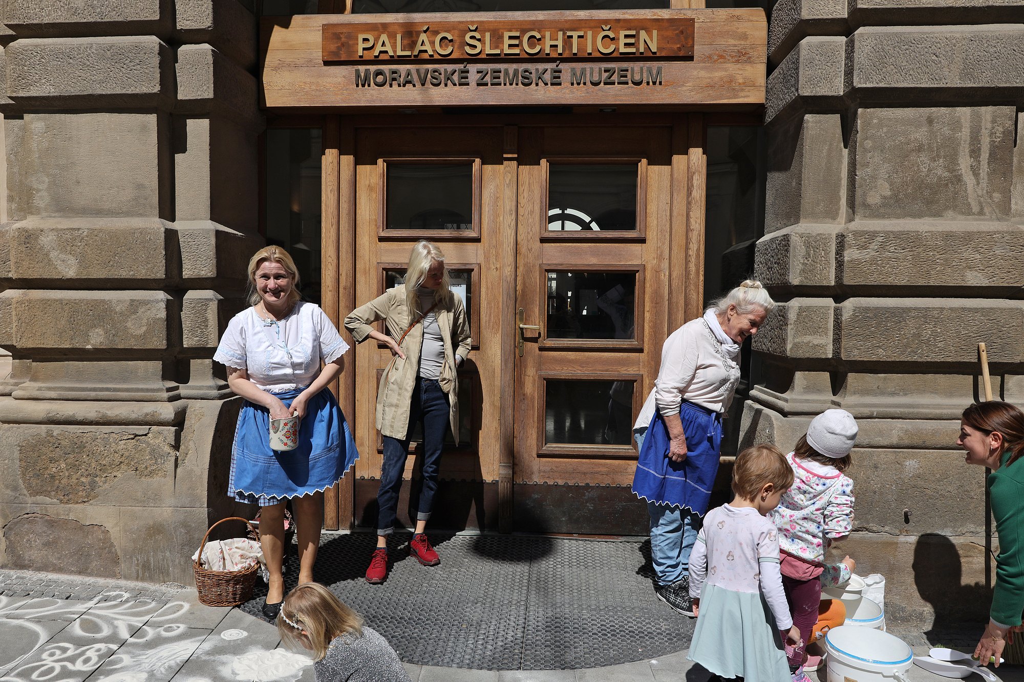 Znalkyně tradičního umění pískem vysypávaných ornamentů ze Šardic budou na prostranství před Palácem šlechtičen nejen předvádět, ale i vyučovat.