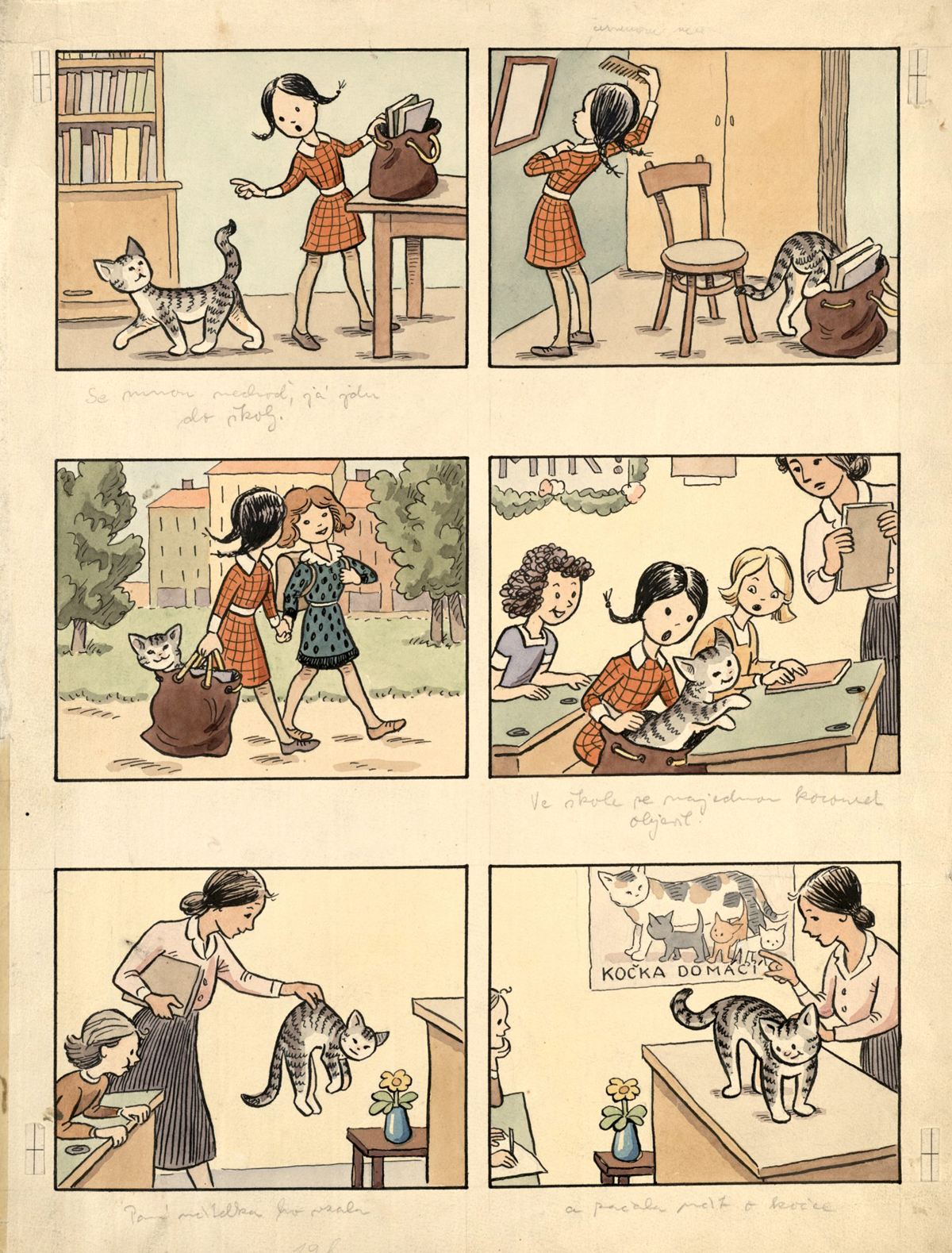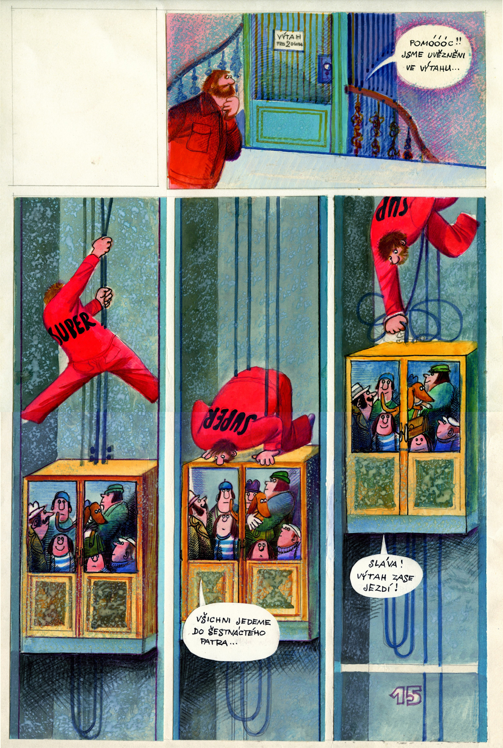 Represented are both famous artists such as Jaroslav Foglar and Jan Fischer, Jaroslav Němeček, Kája Saudek, Lucie Lomová or Pavel Čech, and less known, nevertheless for Czech comic strip important authors. All the generations will be happy to find your favourite works, be they well known pictures from their childhood or comic strips dealing with more serious social themes.