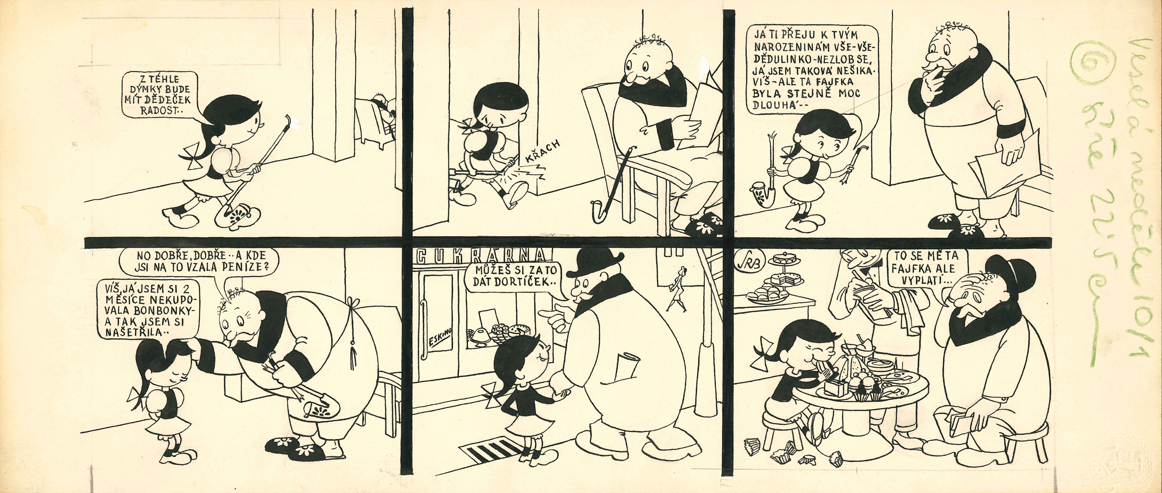 The exhibition has been prepared on the occasion of the centenary of Lada’s picture series „Witty tricks of Frantík Vovísek and the Billy goat Bobeš“ that can be considered as the first Czech comic strip of modern type. The visitors get acquainted with the evolution of Czech picture series from the 19th century till today.