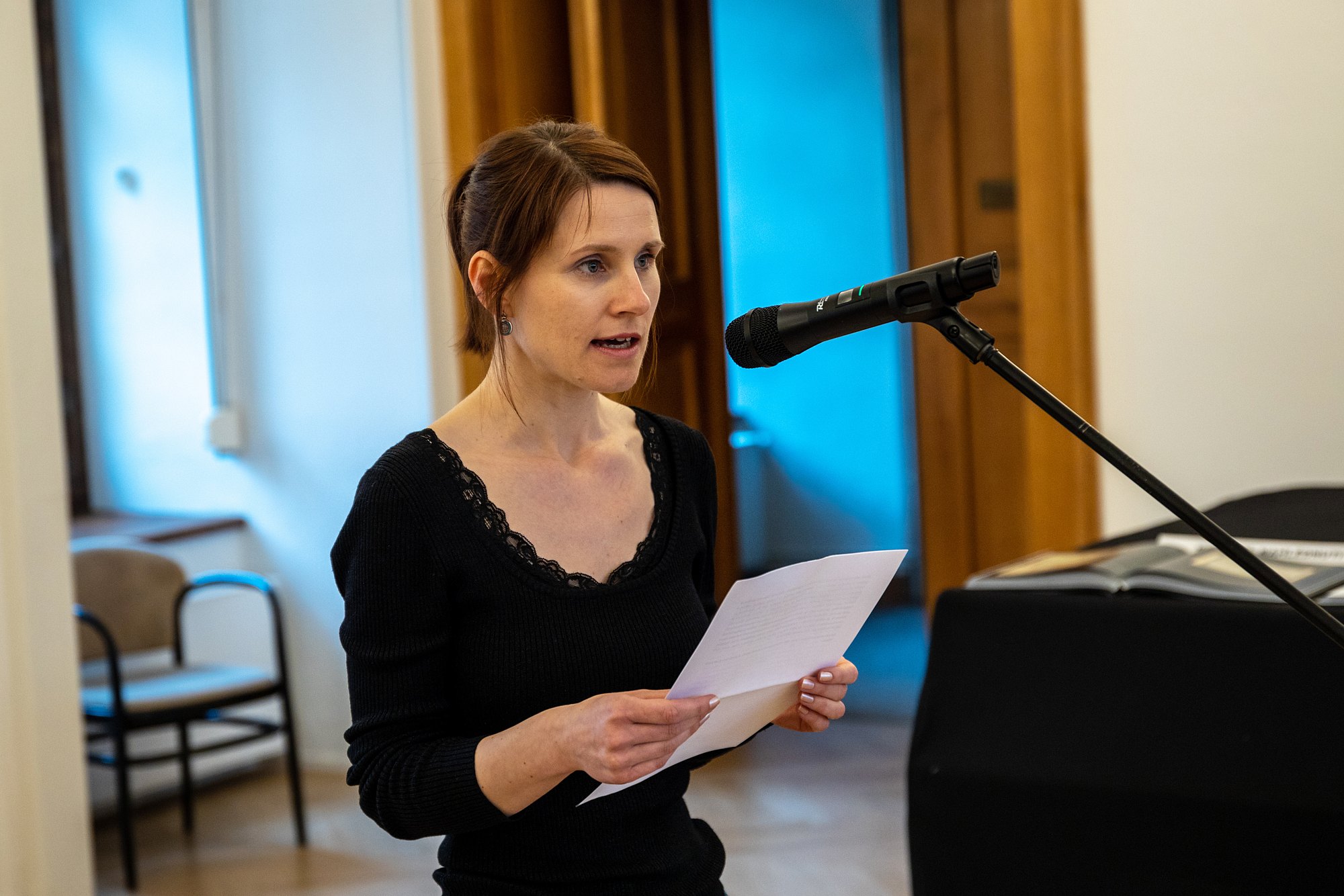 Na vernisáži výstavy A již Marie Terezie... papírová platidla v habsburské monarchii (1759-1918) promluvili kurátoři Mgr. Martina Kvardová a Ing. Vladimír Filip.