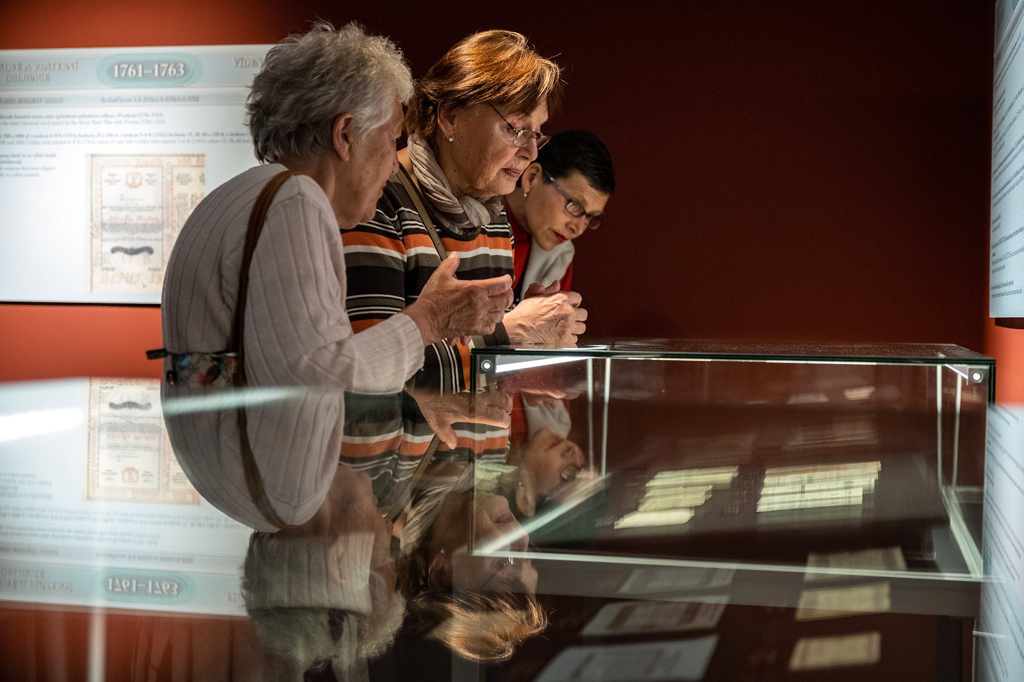 První návštěvníci výstavy se měli možnost seznámit s nejrůznějšími druhy papírových platidel (bankocetle, bankovky, státovky, nouzové peníze, obligace aj.), jež se na území habsburské monarchie používaly od doby vlády Marie Terezie až do zániku Rakouska-Uherska.
