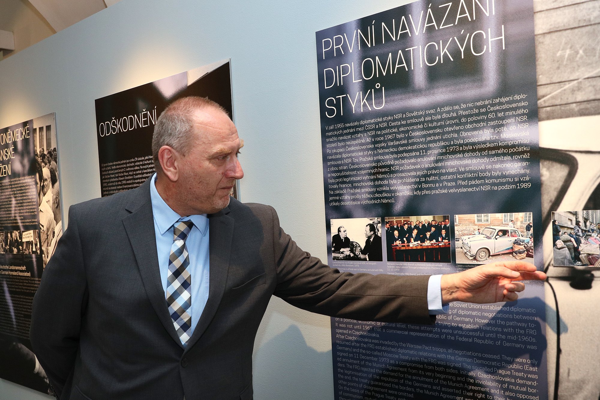 V duchu problematických momentů společných dějin jsme výstavu Česko-německé vztahy po roce 1989 slavnostně otevřeli rozštípnutím ostnatého drátu. Tohoto nelehkého úkolu se neujal nikdo jiný než kurátor výstavy Mgr. Marek Junek, Ph.D.