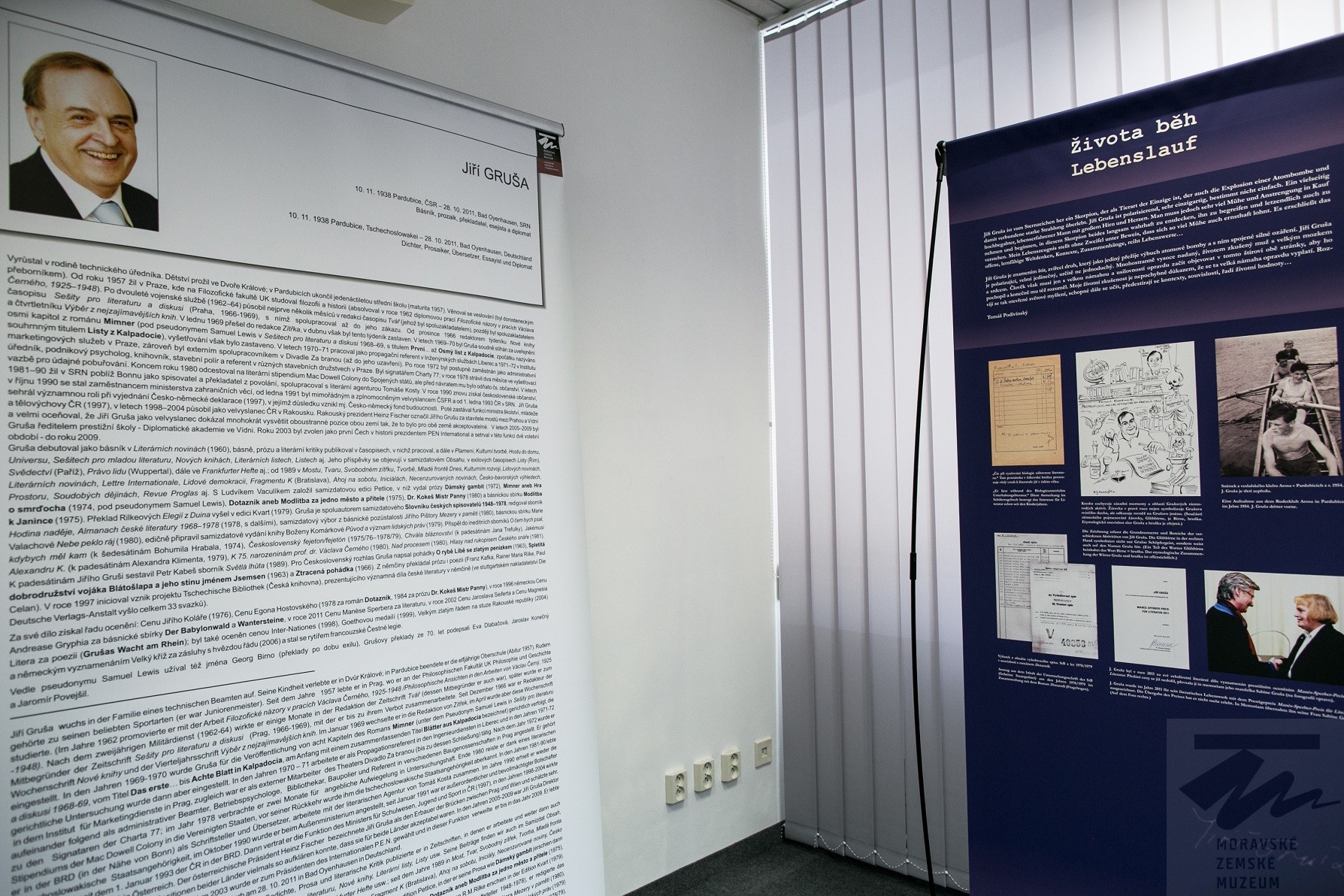 The exhibition gives an insight to the life and work of Jiří Gruša who was, first of all, a poet and prosaist writing both in Czech and German language. In divers stages of his life carrier he was subsequently a dissident, fighter against censorship and dictatorship, later on diplomat, translator, and mediator of national and cultural cooperation. The exhibition conceived both in Czech and German version, is based on materials from the Jiří Gruša fund preserved in the collections of the Moravian Museum. Jiří Gruša, having held the position of the Minister of Education, Youth and Sports of the Czech Republic, the post of Ambassador in Germany and Austria, Director of the Diplomatic Academy in Vienna and President of the worldwide writer organisation „PEN International“, was a true European and a personality of worldwide format. The exhibition is repeatedly staged on the occasion of various cultural events and in various institutions both in this country and abroad.