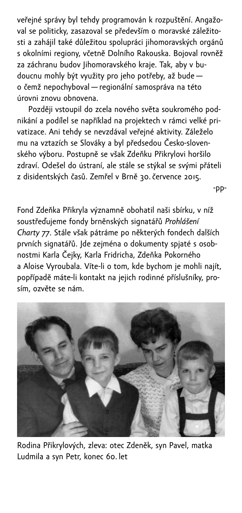 Milé čtenářky, milí čtenáři, dostalo se mi vzácné příležitosti připravit pro vás další číslo našeho bulletinu. Na svých životních poutích každý potkáváme místa, situace a osobnosti, které nás inspirují, proměňují, formují. Pro mne osobně jedno z takových bylo setkání se spisovatelkou, básnířkou, esejistkou, překladatelkou a profesorkou bohemistiky Sylvií Richterovou, a to v roce 2016 při přípravě výstavy a doprovodného katalogu s názvem Proměny cesty. S úžasem jsem se nořila do jednotlivých textů, sledovala, jak její dílo i osobnost vnímají její přátelé a kolegové. Sylvie mne přitahovala svým životním optimismem, smyslem pro humor a pro krásu, nadhledem — plynoucím snad ze zkušeností ze života ve svobodné Itálii i ze schopnosti domluvit se několika jazyky, bouráním předsudků a stereotypů, silným morálním kompasem. Více zde...