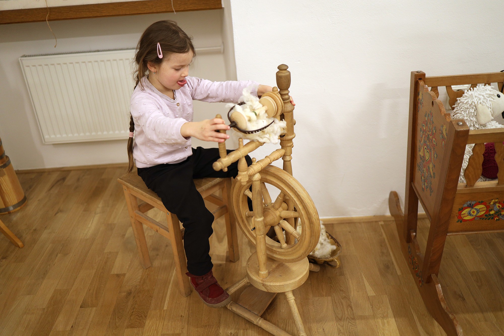 Vyzkoušíte si tkaní na stavu, zjistíte, jak se kdysi dojilo, roztočíte káču, rozhýbete kolovrátek a poznáte řadu tradičních užitkových předmětů. Obléknete si kroj, zahrajete si přebíranou s provázky a v malém divadle rozpohybujete loutky – od stínových (které si můžete i sami vyrobit) přes maňásky a mapety až po klasické marionety.